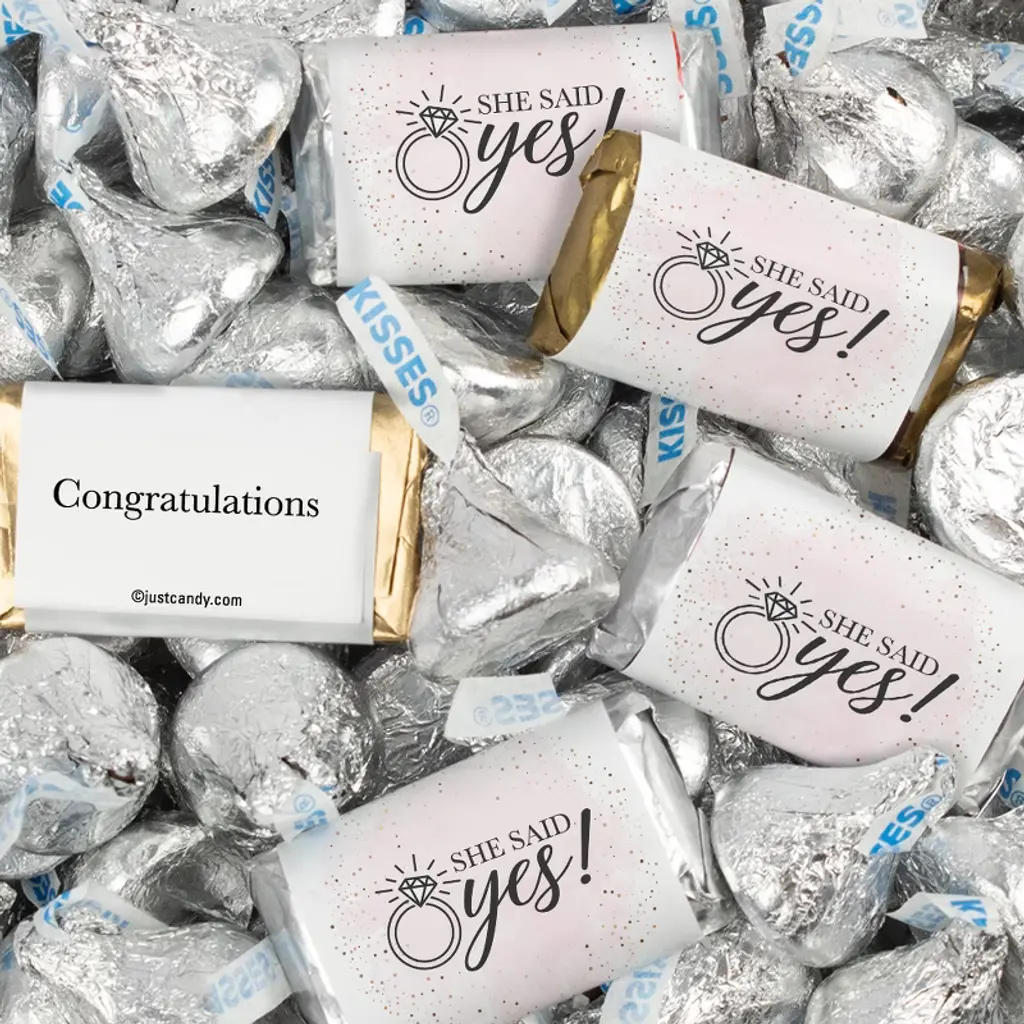 Celebrate the just married couple with candy! Add a touch of sweetness to your engagement party, bridal shower, rehearsal dinner or wedding reception with wedding candy bulk "I Do" Chocolate Kisses. Add the wedding candy to party favors, wedding gifts for guests, wedding welcome bag stuffers, wedding candy buffet table, or scatter them on the table for as reception dinner table decorations. These candies are completely assembled and ready to use at any wedding and bridal event. These wedding bulk candies disappear quickly, so be sure to order a little more than you think you will need. Not quite what you were looking for? Shop Just Candy for thousands of delicious custom personalized candies and candy favors, as well as the largest selection of name brand candy in every color, to make your wedding perfect. You will find the perfect wedding chocolates for guests, wedding mints, candy buffets, and thank you gifts for guests. Candy orders ship with cold pack packaging as needed to guarantee they arrive wedding ready.