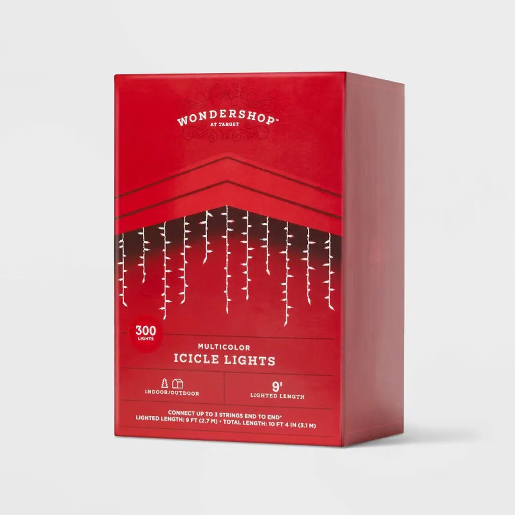 Create a gorgeous display in your home for the holidays or any other occasion with the 300-Count High Density Icicle Lights with White Wire from Wondershop™. These icicle lights are designed with 300 bulbs that connect end-to-end to look great along roof awnings, peaks, windows or any other space. The clear lights help create a glowing space with their constant lighting effect and light up with one setting. Wondershop™: Welcome to the Wondershop.