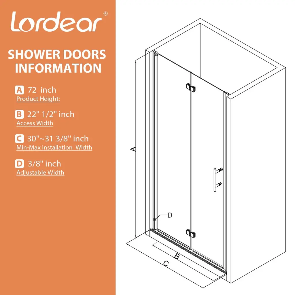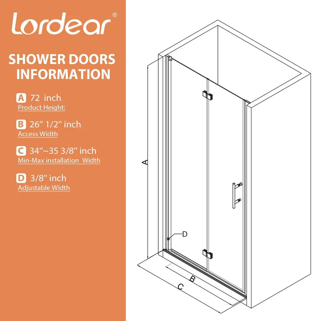 30/32/34/36 In. W X 72 In. H Bifold Semi-Frameless Shower Door With Clear Glass - 36*72 - Chrome