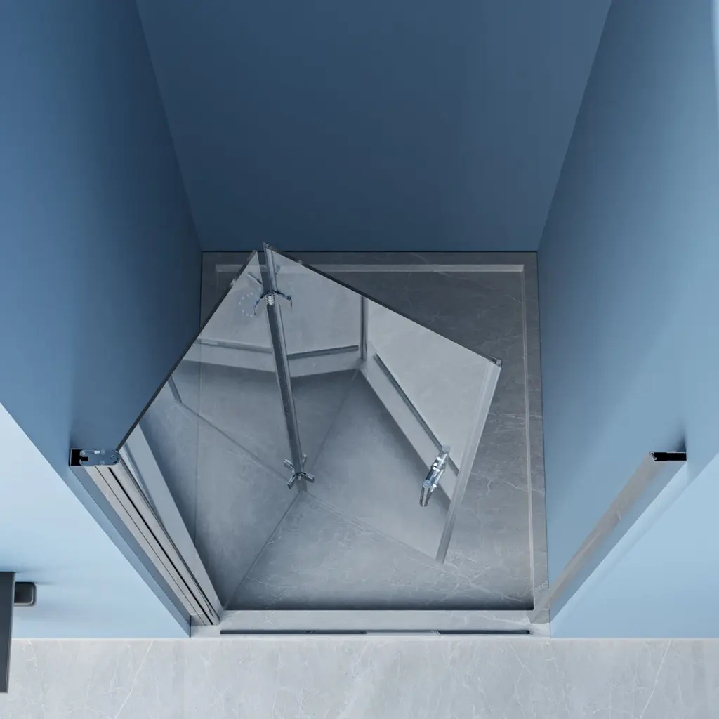 Reversible installation for right- or left-hand door opening for your layout. Hinges and shaft allow overlapping rotate angle 180°for saving place. Our frameless glass shower door comes with a user-friendly installation kit and comprehensive instructions, simplifying the setup process. Transform your bathroom without the hassle of complex installations. Elevate your bathroom with the opulent charm of clear glass, brushed nickel finish pivot shower door. Its refined design and rich gold accents create a lavish focal point.
