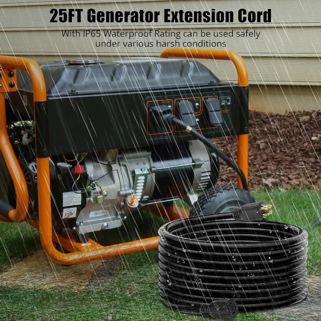 30a Generator Extension Cord, 4 Prong Generator Power Extension Cord, 10/4 Awg Gauge Stw Cord With Locking Connector, L14-30p To L14-30r, 25ft