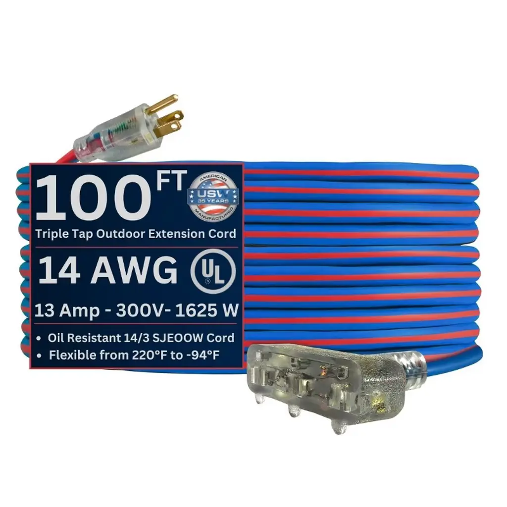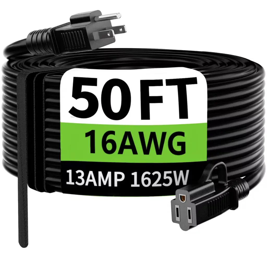 Specification: Material: PVC + Copper Length: 25ft Packing list: 1 x Extension Cord 1 x Plastic Strap 1 x Instruction Manual Note: Read the user manual carefully before use, follow correct operating procedures and safety guidelines to avoid accidents. When unplugging, pull on the plug itself rather than the cord to prevent damage to the cord's connection point. Position extension cords away from heat sources (such as heaters or stoves) to prevent the materials from overheating and deteriorating.