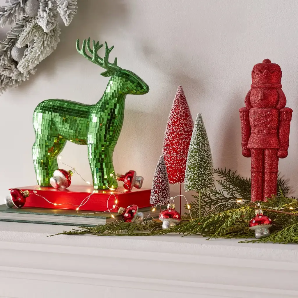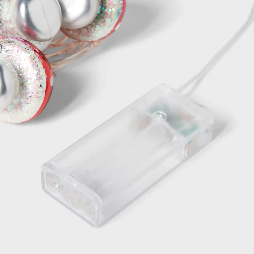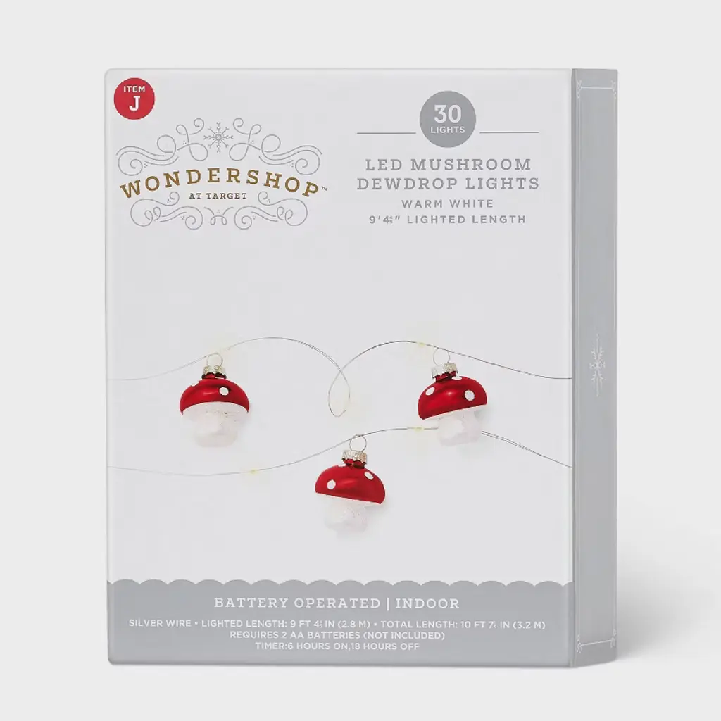Create a delightful setting for the holiday season with the 30-Count LED Dewdrop with Red Mushrooms Christmas Indoor Novelty String Lights from Wondershop™. Designed in the shape of red mushrooms with silver bases, these novelty string lights are strung on a silver wire. The LED bulbs glow with a constant lighting effect and require 2 AA alkaline batteries, and they feature an easy on/off switch.Welcome to the Wondershop™.