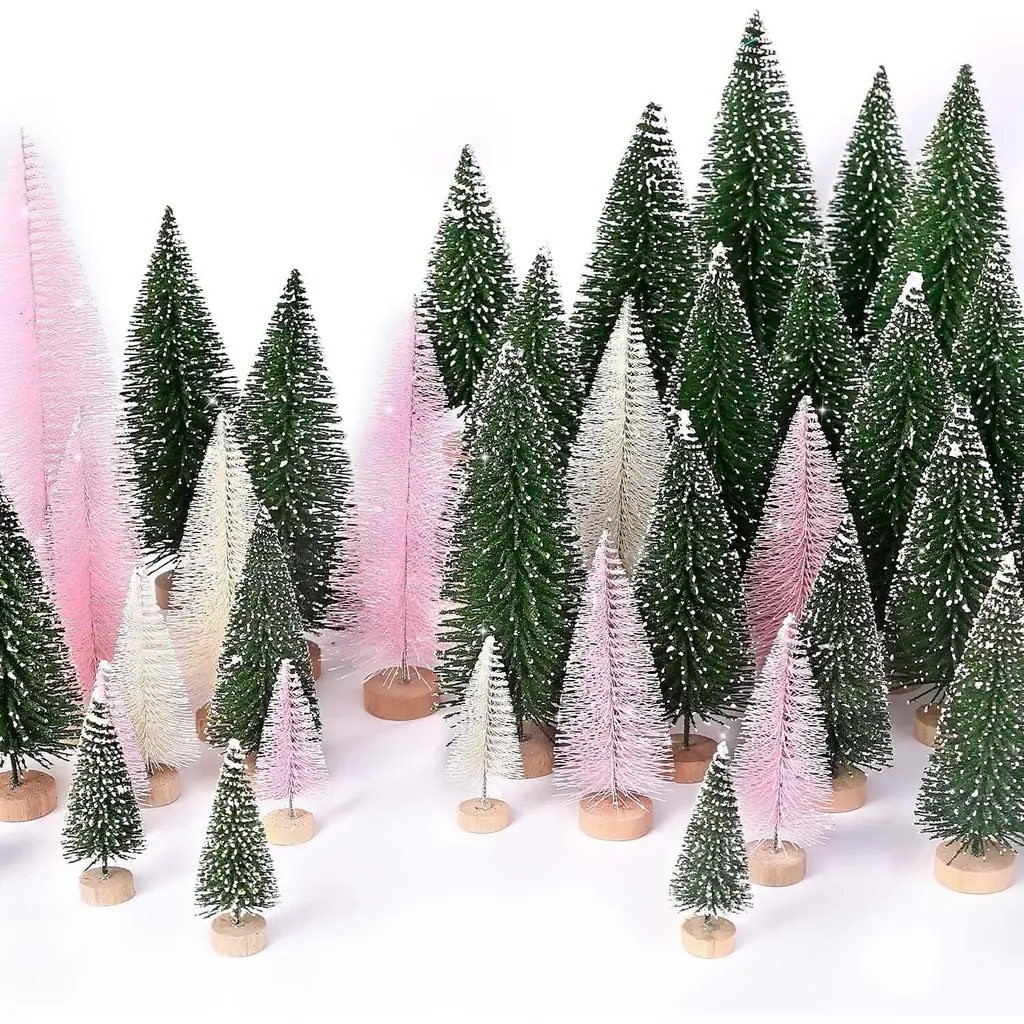 30pcs Mini Christmas Trees Artificial - Green+beige+pink