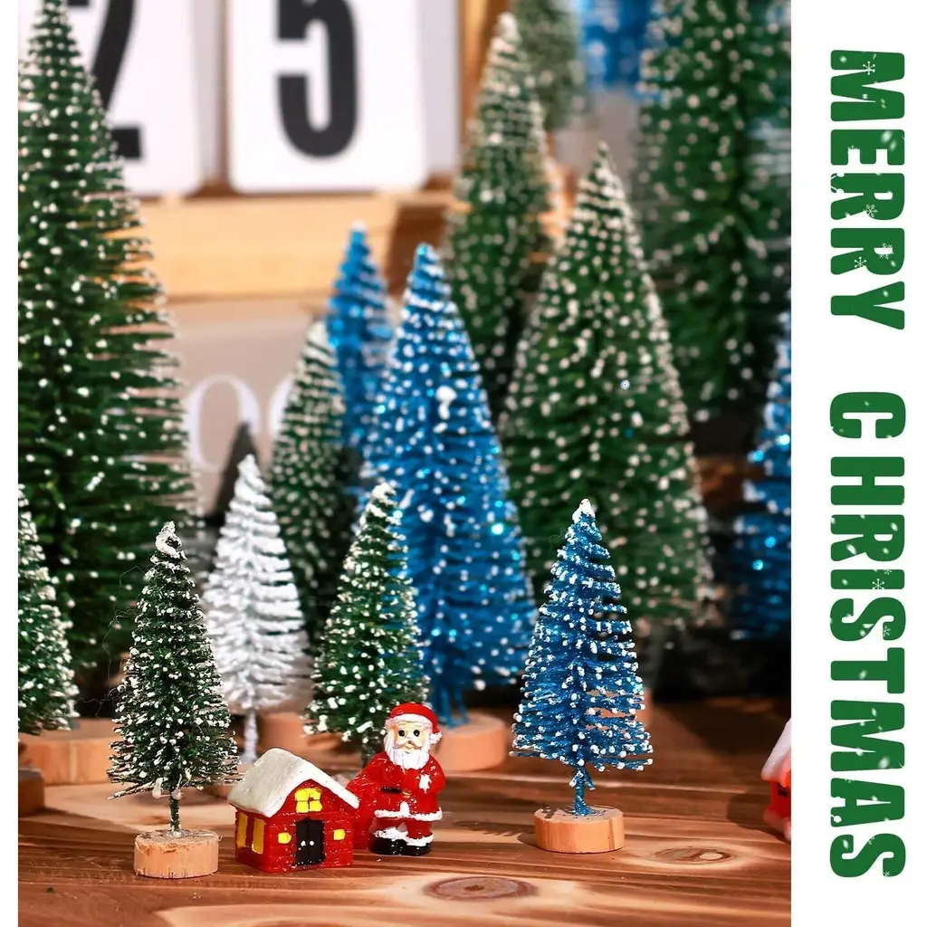 30pcs Mini Christmas Trees Artificial - Green+blue+white