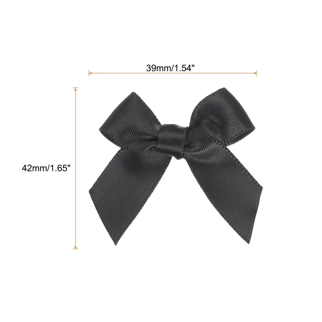 30pcs Mini Ribbon Bow 1.5" Mini Fabric Satin Ribbon Flower Bows - Black