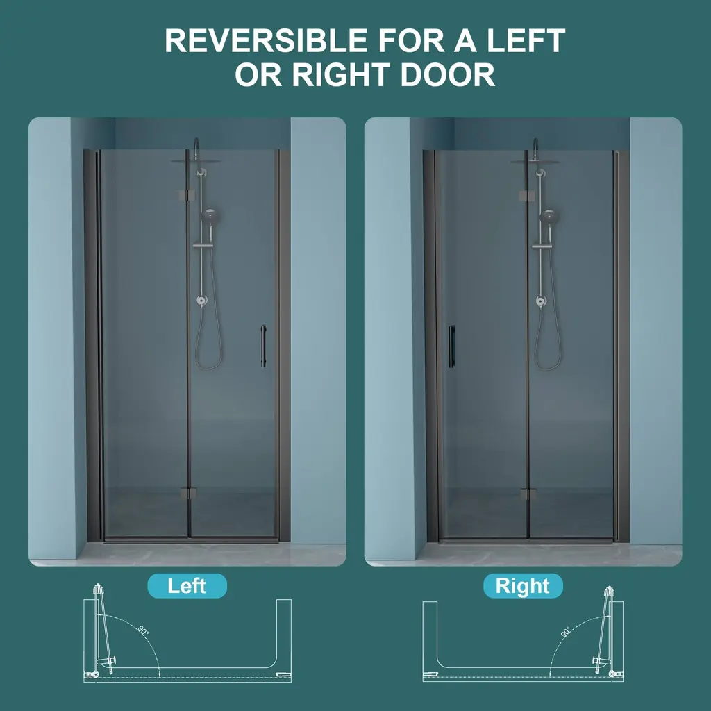 Experience the ultimate in style and functionality with our Folding Frameless Shower Door. Designed to elevate your shower experience, this door combines superior craftsmanship, premium materials, and a space-saving design. Premium Quality: Constructed with high-quality 1/4 inch (6mm) thick tempered clear glass, this folding frameless shower door offers durability and transparency for a modern bathroom experience. Space-saving Design: The aluminum frame and sturdy hinges, made from advanced stainless steel, allow the door to fold and overlap up to 180°, effectively saving space in your bathroom. Easy Installation: With a door length of 30 inches and a height of 72 inches, this folding frameless shower door is designed for convenient installation and a perfect fit in your shower space. Enhanced Safety: The tempered glass used in this shower door provides increased safety and strength, ensuring a secure and reliable shower enclosure. Sleek and Stylish: The frameless design of this shower door creates a minimalist and contemporary look, adding elegance to any bathroom decor.