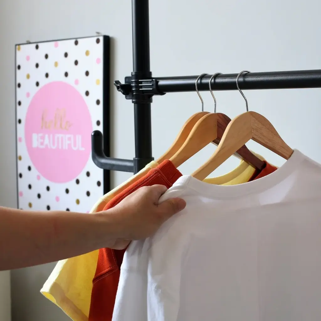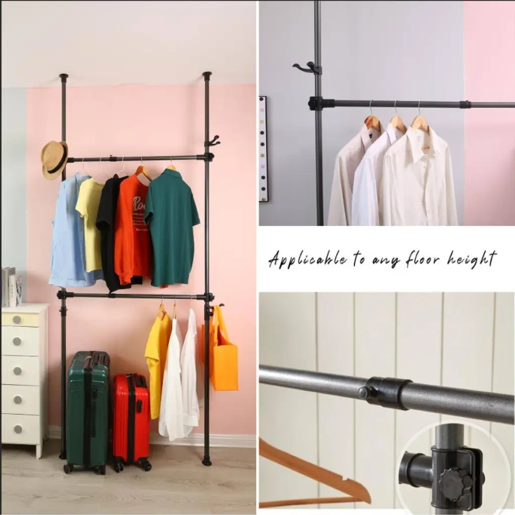 31-47 In Wide Adjustable Telescopic Garment Rack Movable Diy By Hand - Black
