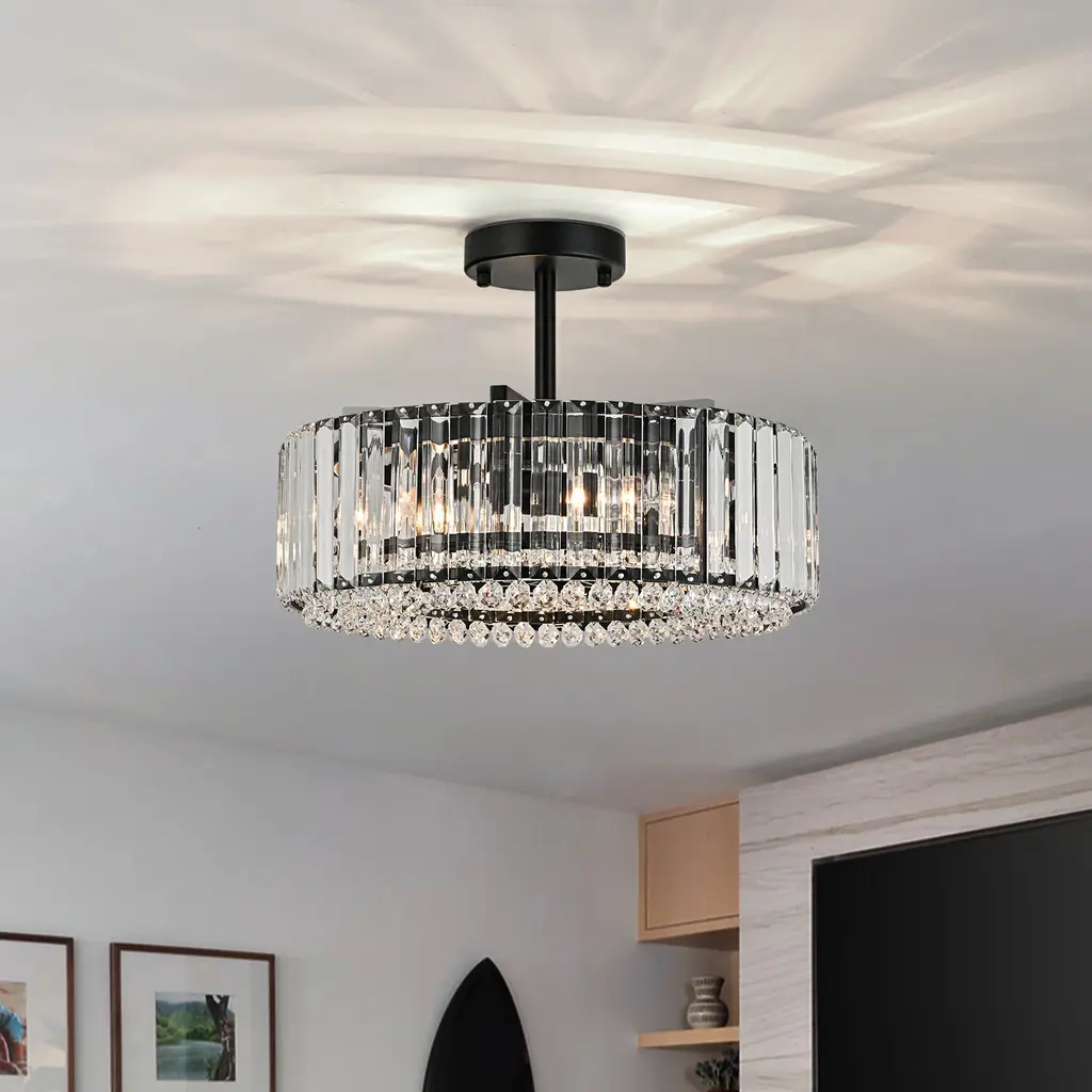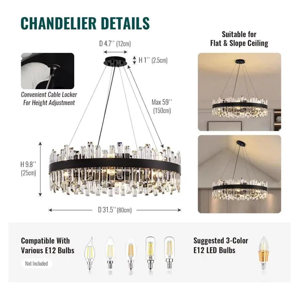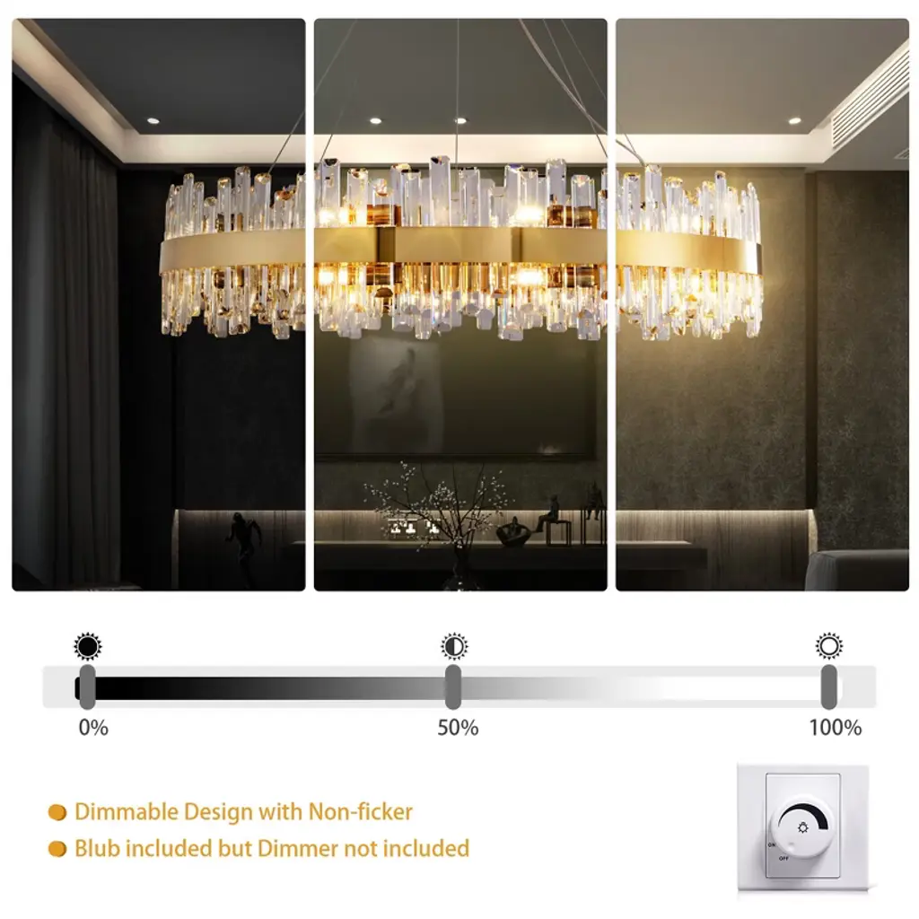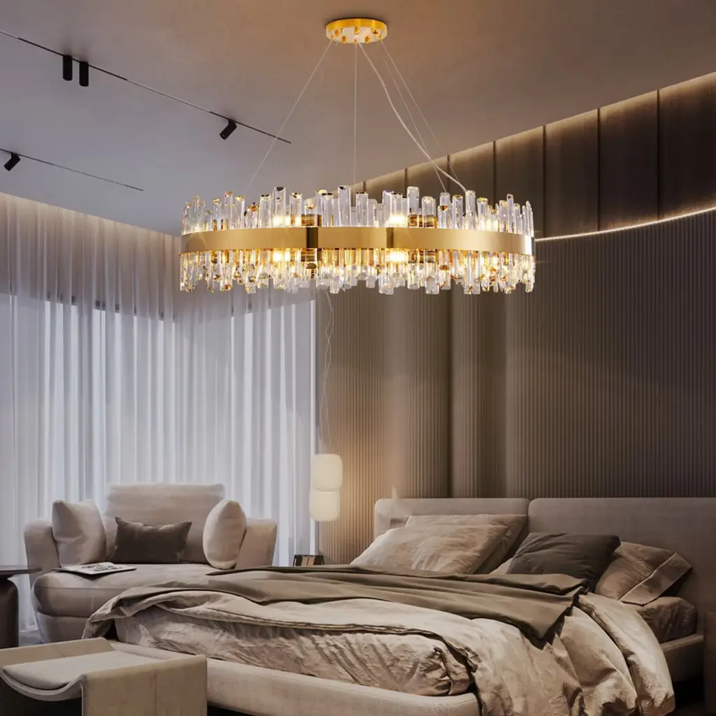 This modern crystal chandelier, made of high-quality metal and transparent k9 crystal, is very unique and luxury. The k9 crystals are unevenly surrounded by the metal frame, creating a colorful lighting under the refraction of light. Sparkling and dazzling, illuminating the entire room in all directions, adding a touch of luxury and elegance to the room.
