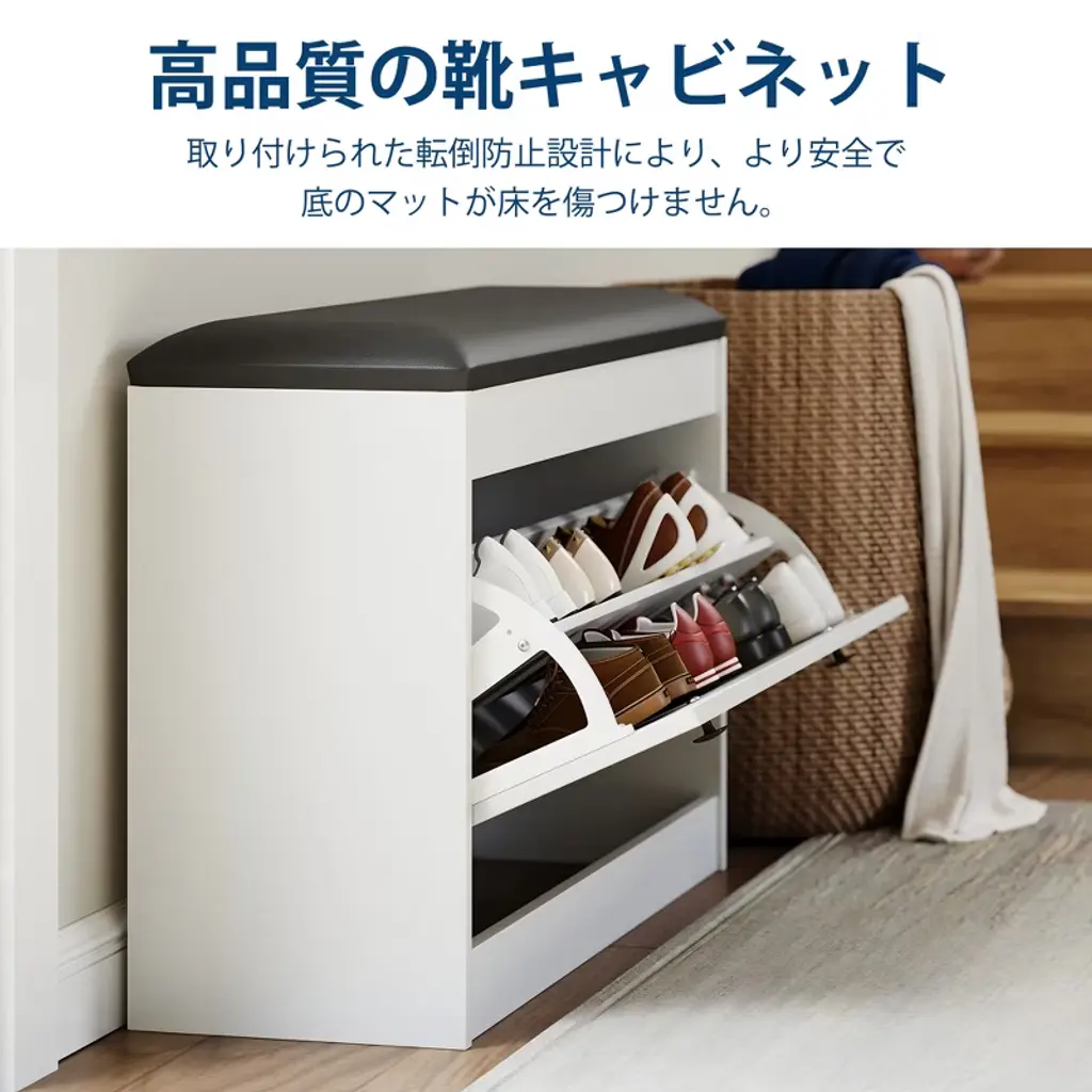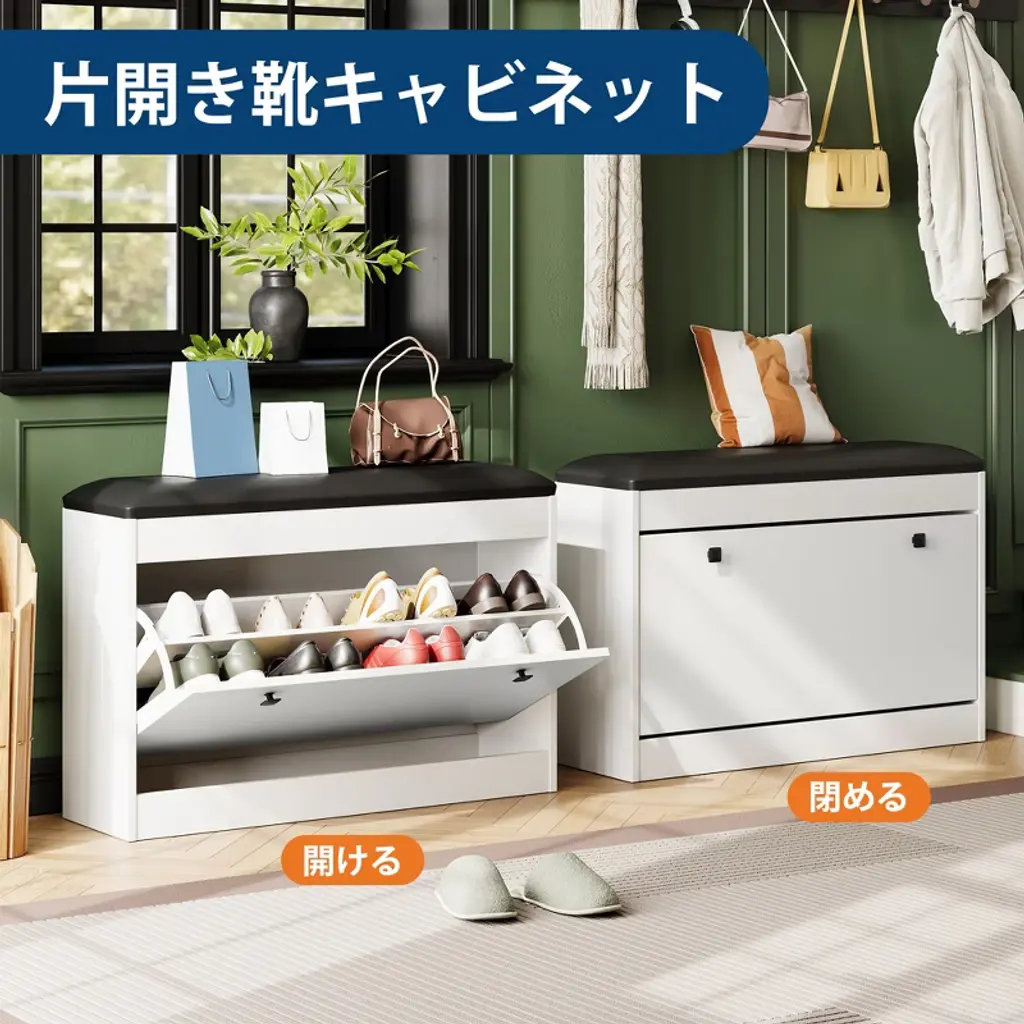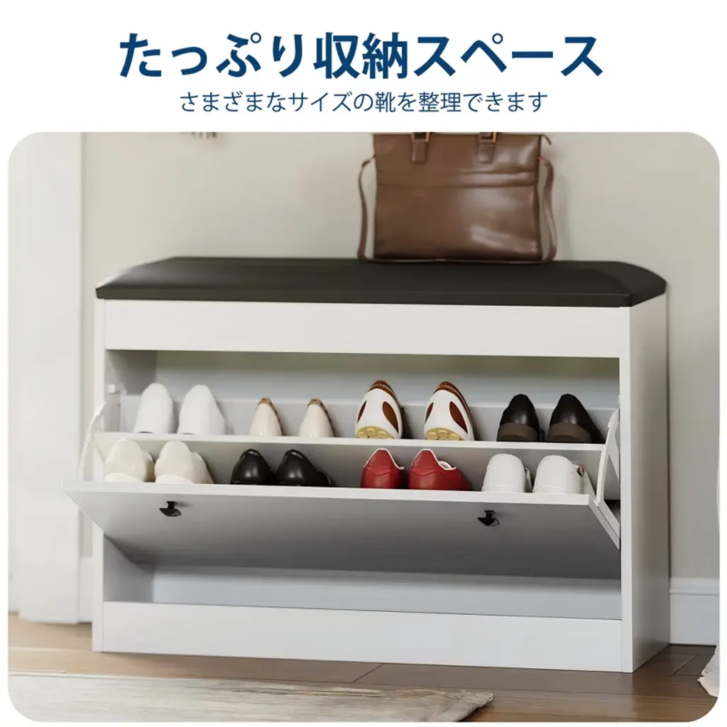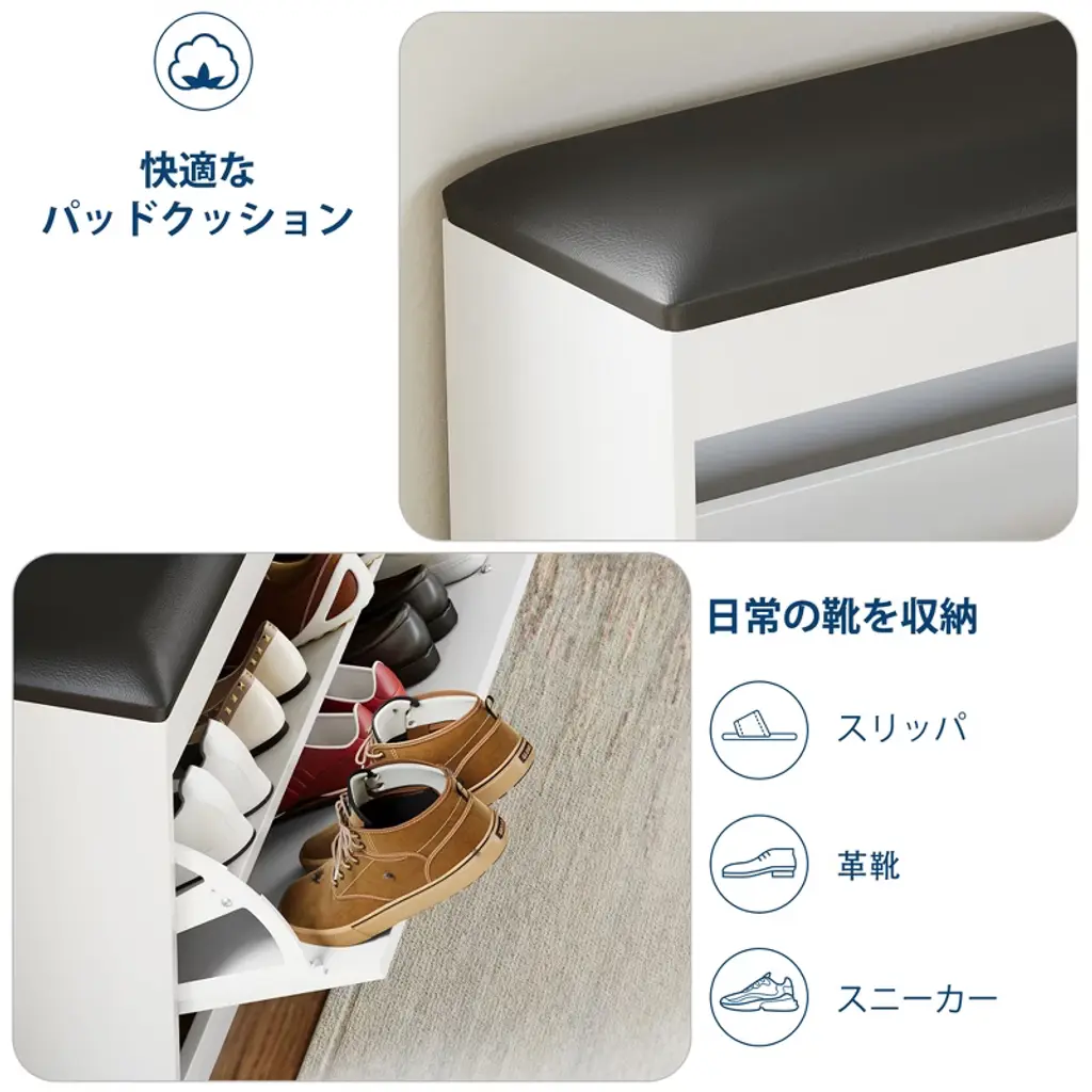 31.5 '' Modern White Shoe Storage Bench With Flip Drawer & Pu Cushion, Space Saving Entryway Bench With Shoe Storage For Apartments,dorms,mudrooms