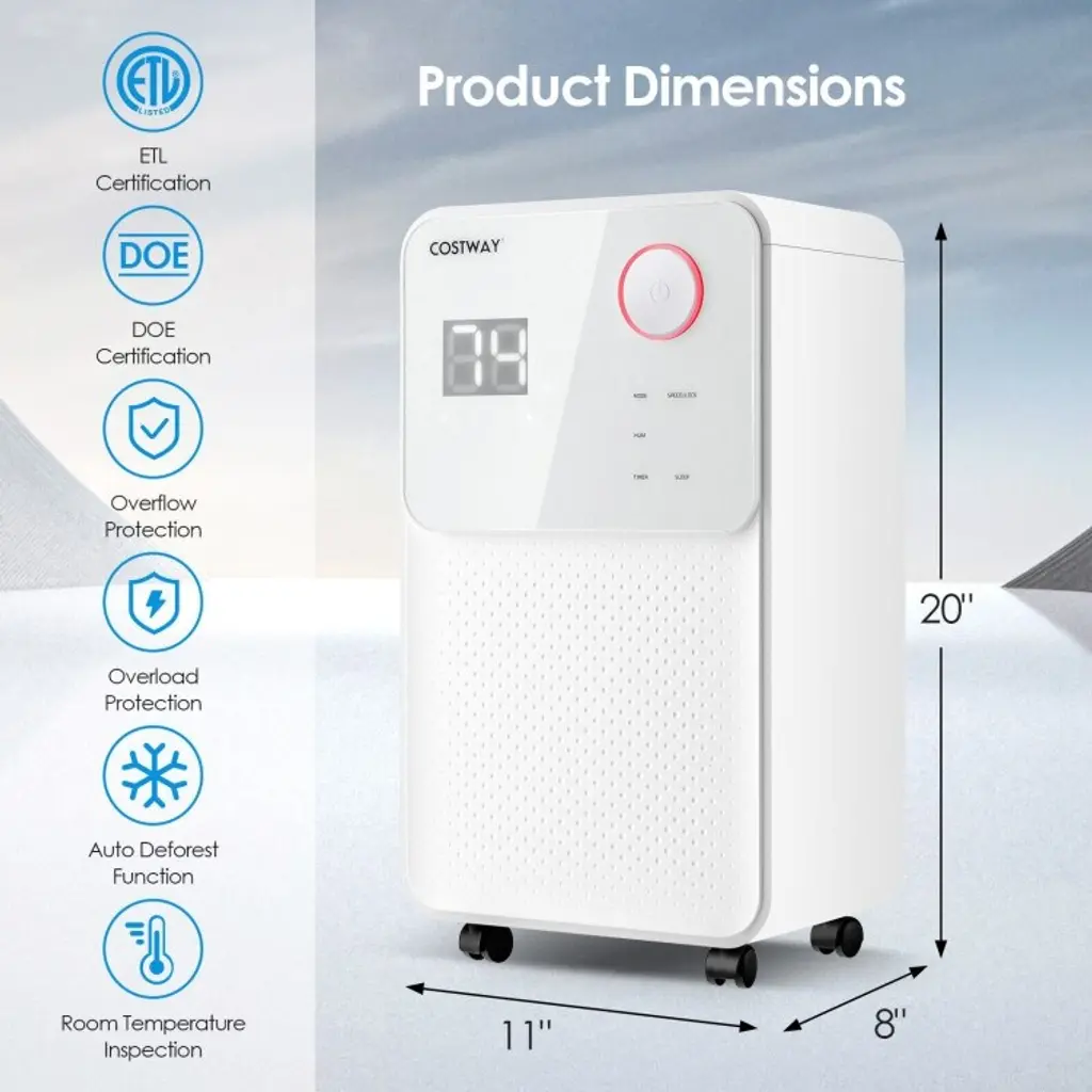 32 Pints 2000 Sq. Ft Dehumidifier For Home And Basements With 3-Color Digital Display-White - 11" X 8"x 20" (L X W X H) - White