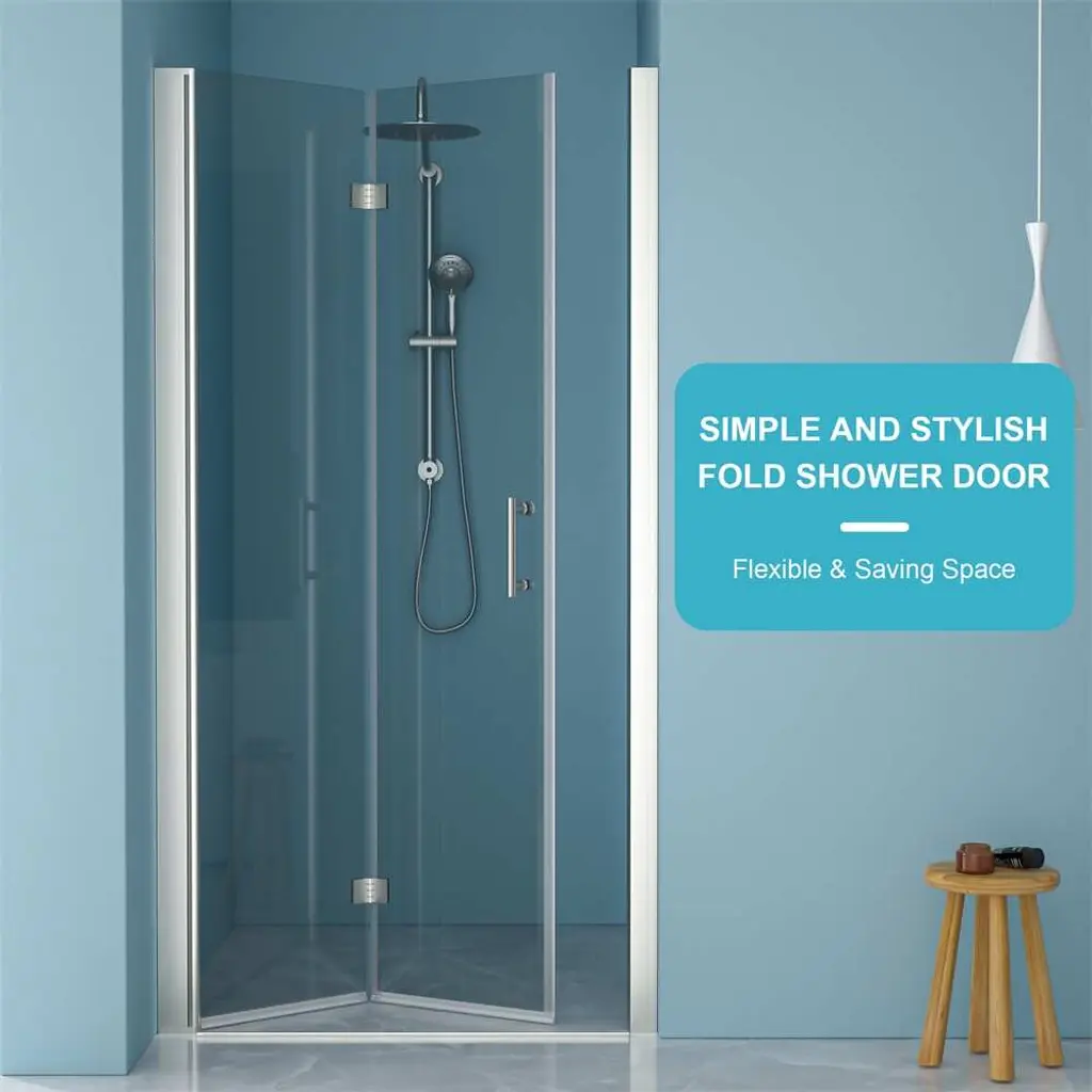 32"w X 72"h Fold Frameless Shower Door With Tempered Glass - Brushed Nickel