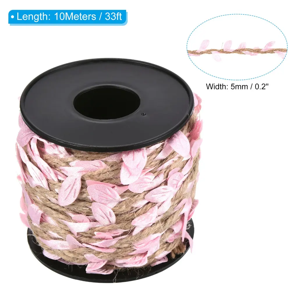 Natural jute twine has various applications, great for home, garden, wedding, jungle theme party and other occasions decorations to add a touch of nature. It also can be used for DIY project, gift wrapping, photo wall, photo album decor, glass jar hanging wrapping decor, garland making, etc.Specification Material: Jute, FabricLength: 10 M / 33 ftWidth: 5 mm / 0.2 inchPacking List: 1 Roll x Leaf Ribbon Burlap TwineAdvantageBurlap leaf ribbon is a natural-looking artificial vine made of jute rope with fabric leaves. The jute twine is soft, not easy to fade, durable and can be used repeatedly. The leaves on the ribbon are carefully crafted to mimic real leaves to create a natural environment.InstructionThe leaf string can be used in place of the cord to wrap and fix gifts or bouquets, the length can be cut as needed.NOTE: Due to the difference in natural light and display resolution, the item color displayed in photos may be showing slightly different from the real object.