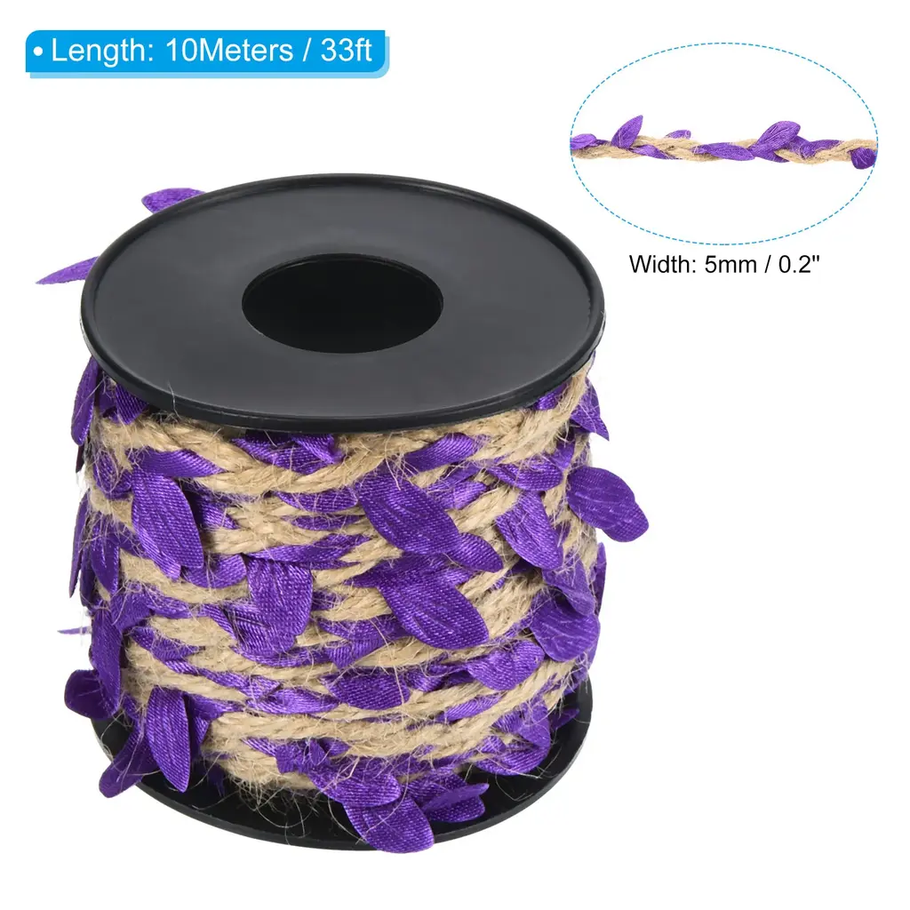 Natural jute twine has various applications, great for home, garden, wedding, jungle theme party and other occasions decorations to add a touch of nature. It also can be used for DIY project, gift wrapping, photo wall, photo album decor, glass jar hanging wrapping decor, garland making, etc.Specification Material: Jute, FabricLength: 10 M / 33 ftWidth: 5 mm / 0.2 inchPacking List: 1 Roll x Leaf Ribbon Burlap TwineAdvantageBurlap leaf ribbon is a natural-looking artificial vine made of jute rope with fabric leaves. The jute twine is soft, not easy to fade, durable and can be used repeatedly. The leaves on the ribbon are carefully crafted to mimic real leaves to create a natural environment.InstructionThe leaf string can be used in place of the cord to wrap and fix gifts or bouquets, the length can be cut as needed.NOTE: Due to the difference in natural light and display resolution, the item color displayed in photos may be showing slightly different from the real object.