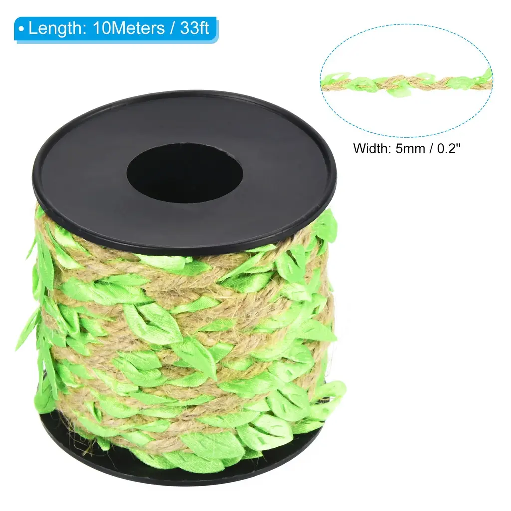 33ft 5Mm Burlap Leaf Ribbon Artificial Vine Natural Jute Rope Twine - Light Green