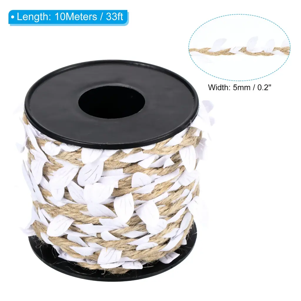 Natural jute twine has various applications, great for home, garden, wedding, jungle theme party and other occasions decorations to add a touch of nature. It also can be used for DIY project, gift wrapping, photo wall, photo album decor, glass jar hanging wrapping decor, garland making, etc.Specification Material: Jute, FabricLength: 10 M / 33 ftWidth: 5 mm / 0.2 inchPacking List: 1 Roll x Leaf Ribbon Burlap TwineAdvantageBurlap leaf ribbon is a natural-looking artificial vine made of jute rope with fabric leaves. The jute twine is soft, not easy to fade, durable and can be used repeatedly. The leaves on the ribbon are carefully crafted to mimic real leaves to create a natural environment.InstructionThe leaf string can be used in place of the cord to wrap and fix gifts or bouquets, the length can be cut as needed.NOTE: Due to the difference in natural light and display resolution, the item color displayed in photos may be showing slightly different from the real object.