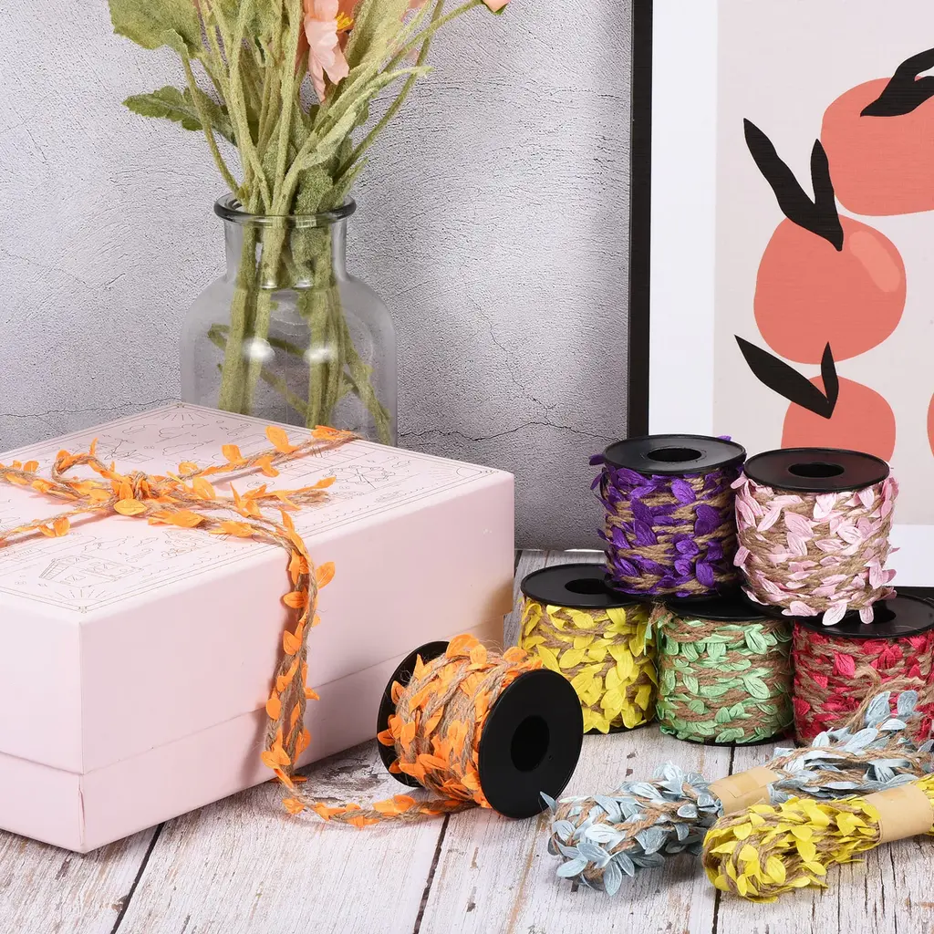 Natural jute twine has various applications, great for home, garden, wedding, jungle theme party and other occasions decorations to add a touch of nature. It also can be used for DIY project, gift wrapping, photo wall, photo album decor, glass jar hanging wrapping decor, garland making, etc.Specification Material: Jute, FabricLength: 10 M / 33 ftWidth: 5 mm / 0.2 inchPacking List: 1 Roll x Leaf Ribbon Burlap TwineAdvantageBurlap leaf ribbon is a natural-looking artificial vine made of jute rope with fabric leaves. The jute twine is soft, not easy to fade, durable and can be used repeatedly. The leaves on the ribbon are carefully crafted to mimic real leaves to create a natural environment.InstructionThe leaf string can be used in place of the cord to wrap and fix gifts or bouquets, the length can be cut as needed.NOTE: Due to the difference in natural light and display resolution, the item color displayed in photos may be showing slightly different from the real object.