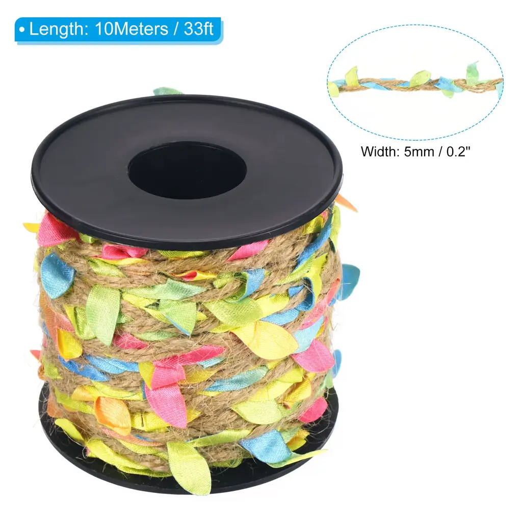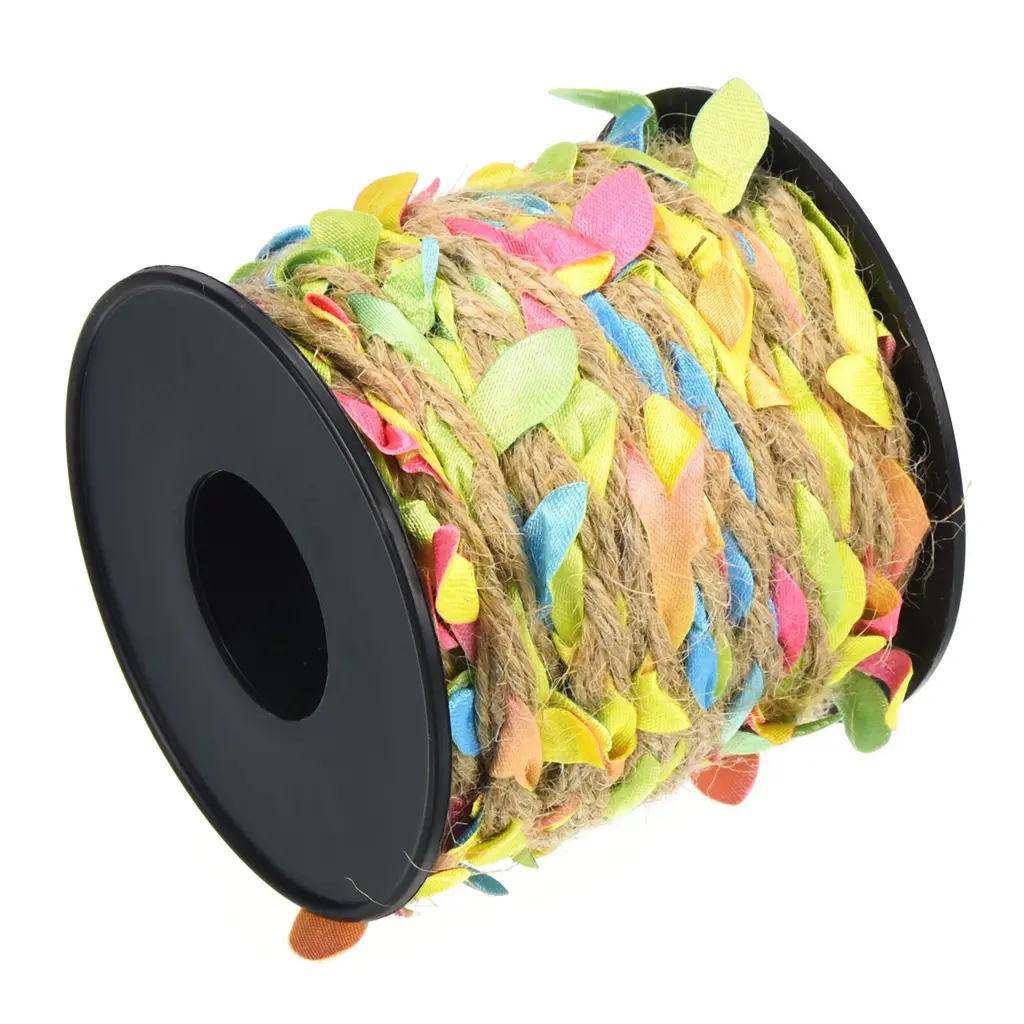 33ft 5Mm Burlap Leaf Ribbon Vine Natural Jute Rope Twine, Multicolor - 1 Roll