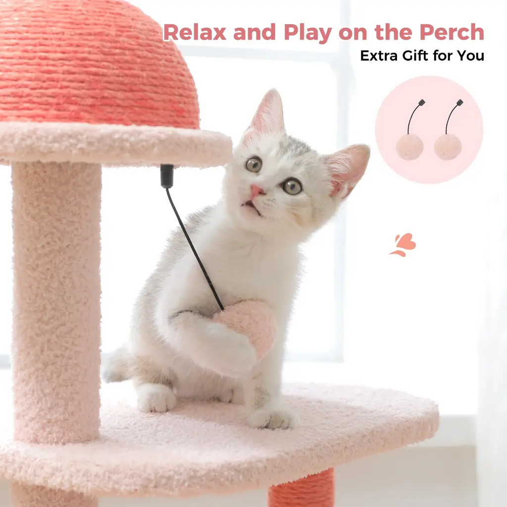 34.2in Flamingo Cute Cat Tree, Cat Tower With Sisal Scratching Posts For Small Cats And Kittens - Peach Pink