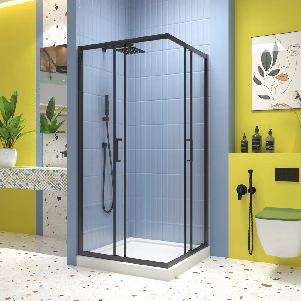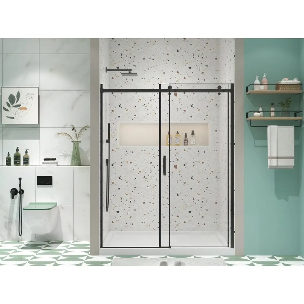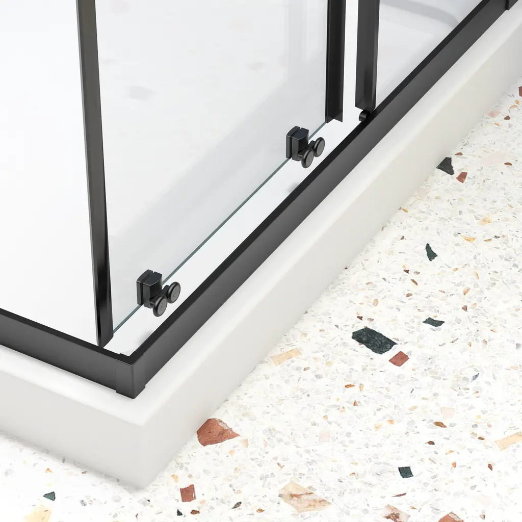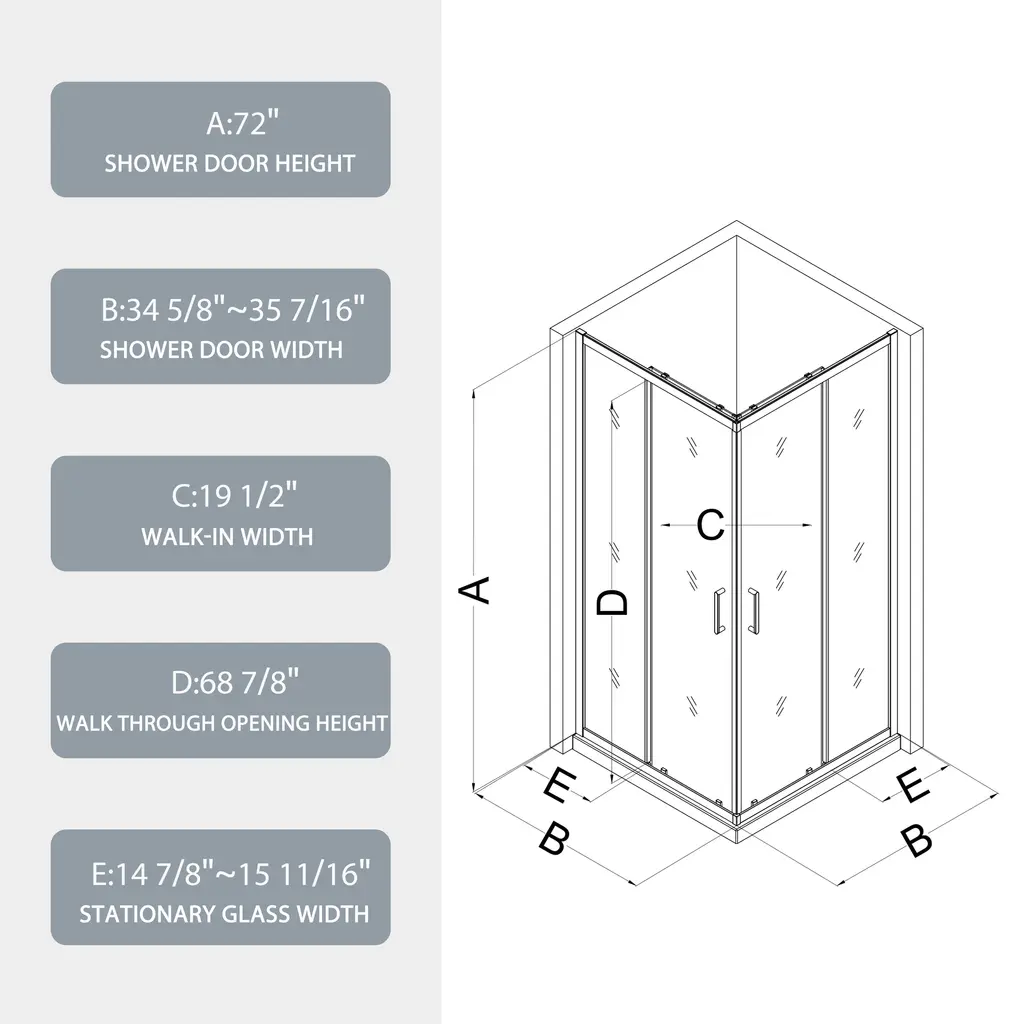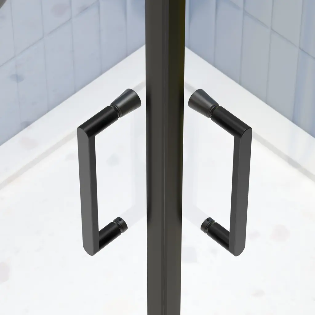 This sliding shower door is designed with multiple great features. It has an alu wall channel and a quality #304 stainless steel handle that has passed 36,000 times open and close test. Made of SGCC 1/4" tempered clear glass, it's easy to install. The smooth and comfortable pivot system ensures smooth operation. With a good anti-leakage function and a stainless steel support bar, it's quite practical. Its size is 34.625"x35.437"x72", featuring a 17.72" stainless steel handle. It can be installed for left or right open and is suitable for both shower pan and floor installation. The Frame Neo-Angle Pivot Shower Enclosure comes in Matte Black, adding an elegant touch to your bathroom.