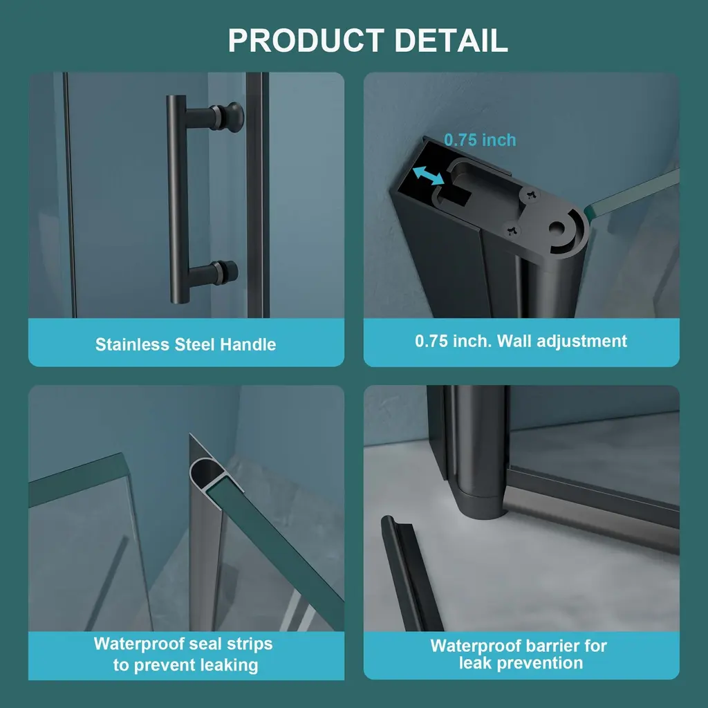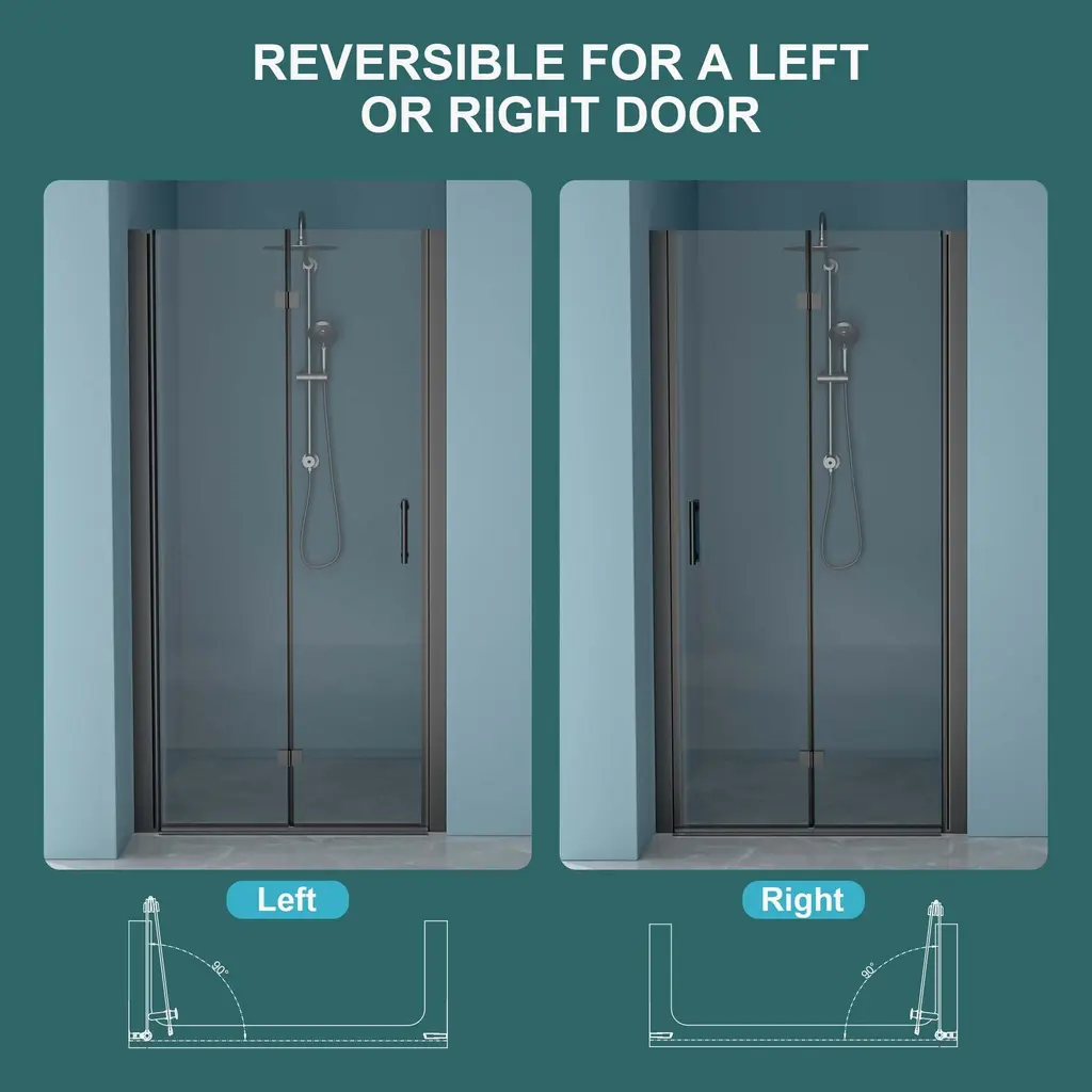 【Product Features】 ★Bi-Fold Frameless Shower Door: This shower door is 34 in. W x 72 in. H; Premium 1/4 inch (6 mm) thick tempered clear glass. Water-resistant Screen Defends Against Limescale, Ensuring Long-Lasting Cleanliness. ★Premium-Grade Components: The aluminum frame and sturdy hinges of our shower doors are crafted from high-grade stainless steel. ★Flexible installation: Designed for flexible installation, our frameless glass shower door offers reversible options for both right- and left-hand door opening, tailored to your specific layout. The hinges and shaft feature a 180° overlapping rotate angle for efficient space-saving. ★Adjustable: This shower door offers a 1 3/8-inch adjustability range, ensuring it can be tailored to fit various wall spacing widths in shower rooms. (Including trapezoidal walls) ★Saving space: Wide entry, minimal space. Maximizes bathroom functionality with sleek, unobtrusive design. Ideal for small spaces. 【This product is fragile, if there is any damage when you receive the goods, please take a photo and contact us, so that we can quickly verify and deal with you】 【Notes】 1.Size Notice:Manual measurement has been used, there may be some reasonable errort, thanks for your understanding. 2.Color Notice:Due to factors such as display equipment and shooting environment, the color of the item may be slightly different from the picture, which is a normal phenomenon, please refer to the actual item 3.Assembly Notice:Please read assemble manual in advance. Please do not over-tighten nuts, as this may cause distortion or breakage. 4.It is recommended to put a layer of foam or soft cushion on the floor when installing to avoid scratching the floor. 5.If the item has any defects, damage or missing parts, please contact us with pictures or videos so that we can understand your needs and help you quickly, and always remember to retain its original packaging to ensure any return requests. We will try our best to solve any problems you may have. 6.If you receive the wrong product, please attach the product picture, the infographic of the outer package and the picture containing SKUs, so that we can verify and quickly deal with it for you