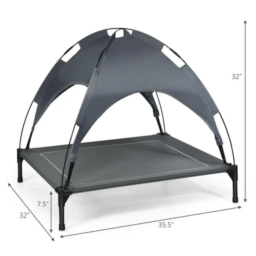 35.5" X 32" Dog Cot With Uv Protection Canopy Shade - 35.5" X 32" X 32"(l X W X H) - Grey