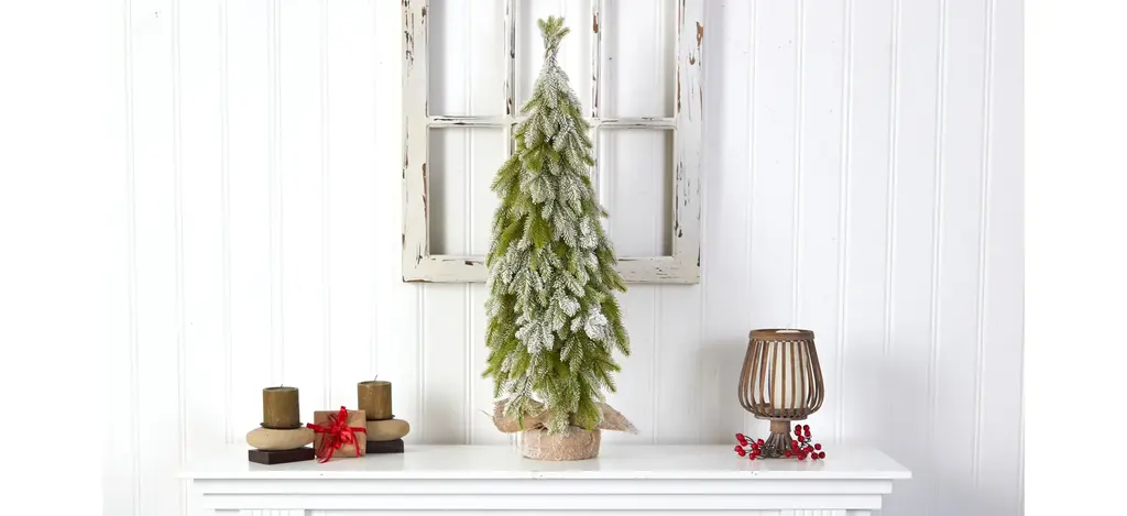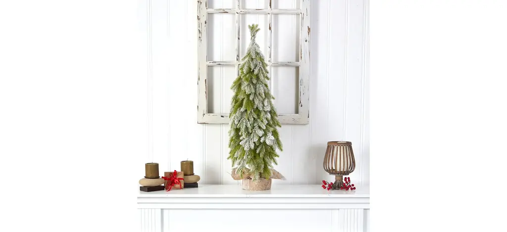 Spread Christmas cheer to your tabletops with this desktop 35" Flocked Down Swept Artificial Christmas Tree in Burlap Base. Recreate a winter landscape with the thick branches that look lifelike. Hang all your favorite Christmas ornaments quickly and effortlessly, and you can even illuminate with your favorite lights. Perfect for a kids' room, office or mantel. Your artificial Christmas Tree will look beautiful for years to come; simply wipe clean with a soft dry cloth when needed.