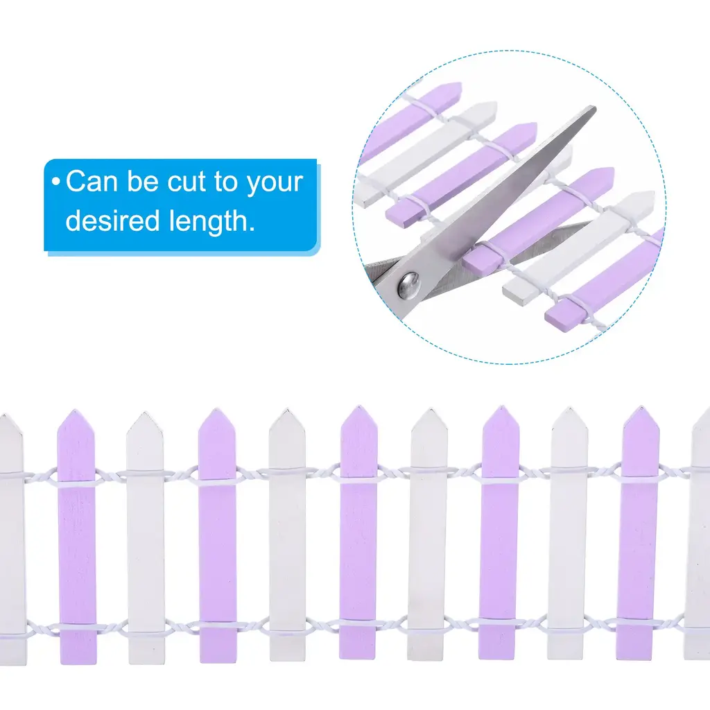 This miniature garden fence is a small decorative fence used to create a miniature landscape or fairy garden, adding enchanting charm to these scenes. They are typically used in micro gardens or fairy gardens to establish boundaries for the plant, pathway or structure. The mini fence can also serve as decorative elements in the dollhouse or miniature scene, providing a realistic touch to the environment.SpecificationColor: Purple WhiteMaterial: WoodLength: 90cm / 35"Height: 5cm / 2"Packing List: 1Pcs x Mini Wooden Picket FenceAdvantageThe miniature fairy garden fence is made of painted wood and bound with metal wire, providing realistic design, durability and long-lasting use. It is lightweight, allowing easy movement according to needs. This fence adds a rustic and natural atmosphere to any environment, enhancing the overall aesthetics.InstructionEasy to use, the fairy fence can be cut to your desired length with pliers.NOTE: Due to the difference in natural light and display resolution, the item color displayed in photos may be slightly different from the real object.