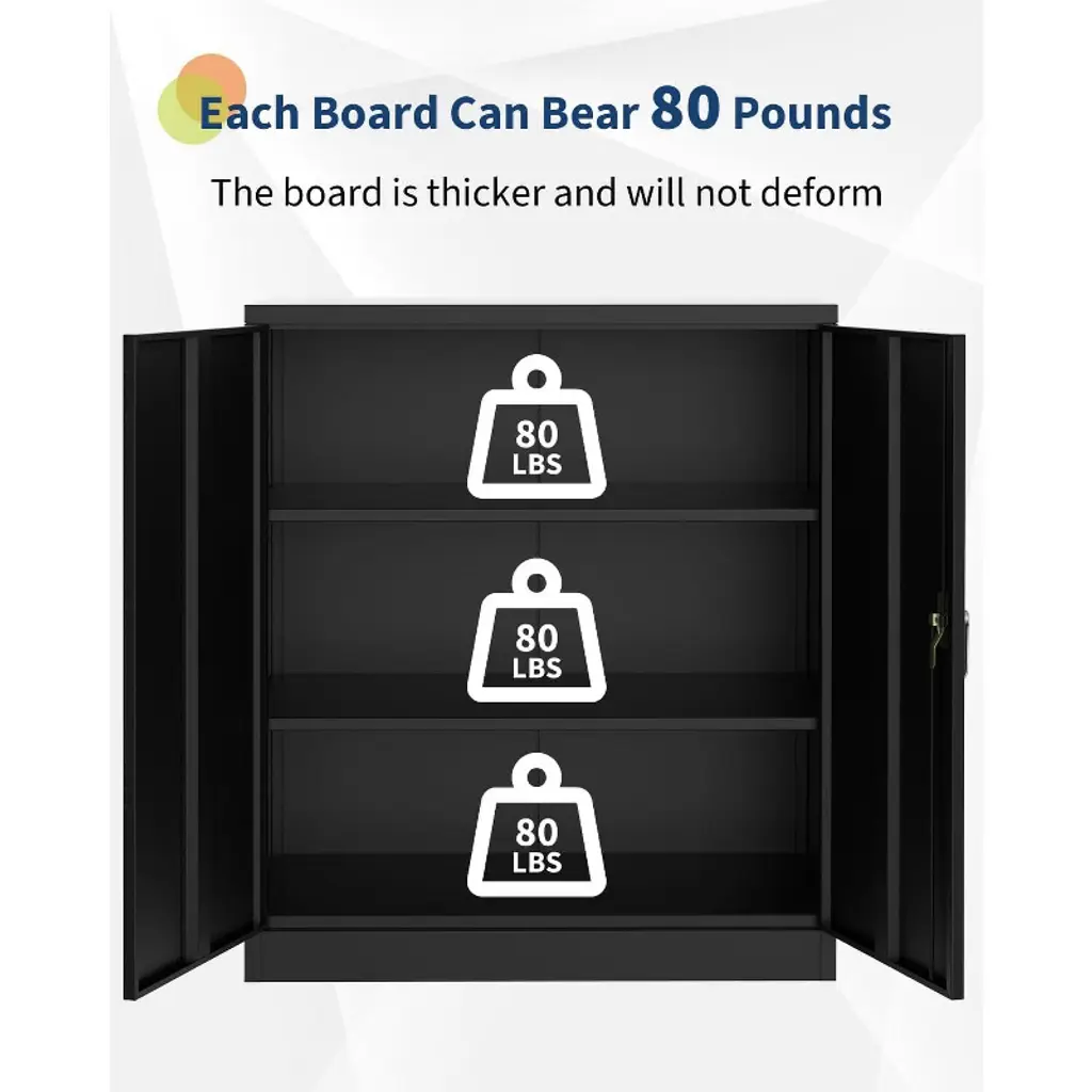 35" Metal Storage Cabinet with 2 Adjustable Shelves & Lockable Doors, Heavy Duty Steel Cabinet for Garage/Office - Rust-Resistant, Easy Assembly, Multi-Purpose Workshop Storage (Black)