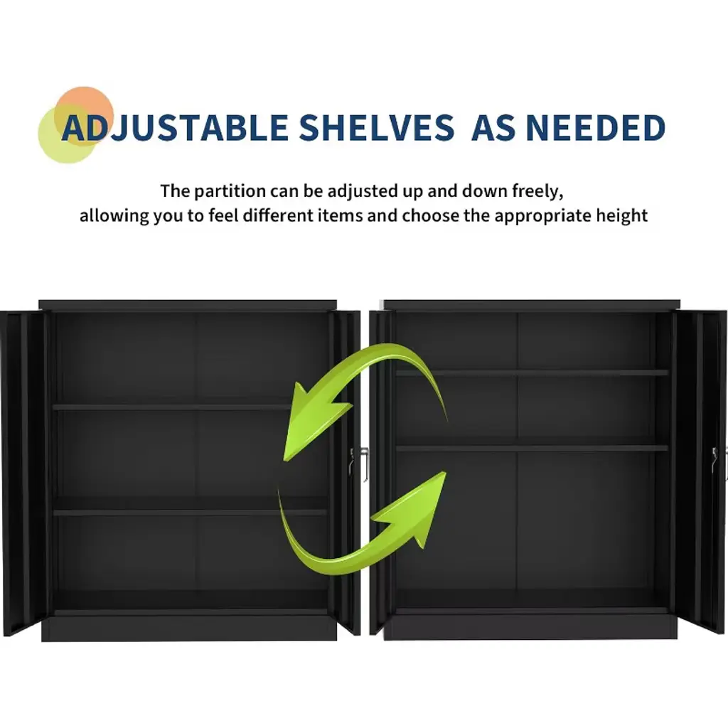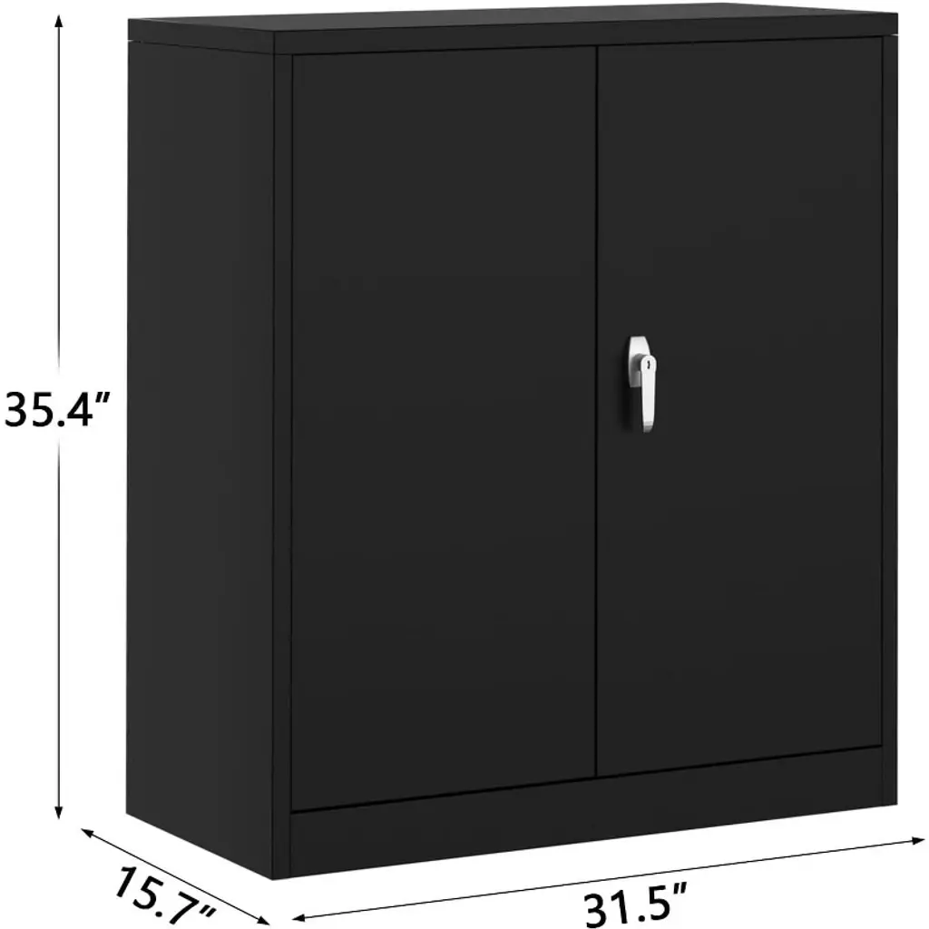 35" Metal Storage Cabinet With 2 Adjustable Shelves & Lockable Doors, Heavy Duty Steel Cabinet For Garage/office - Rust-resistant, Easy Assembly