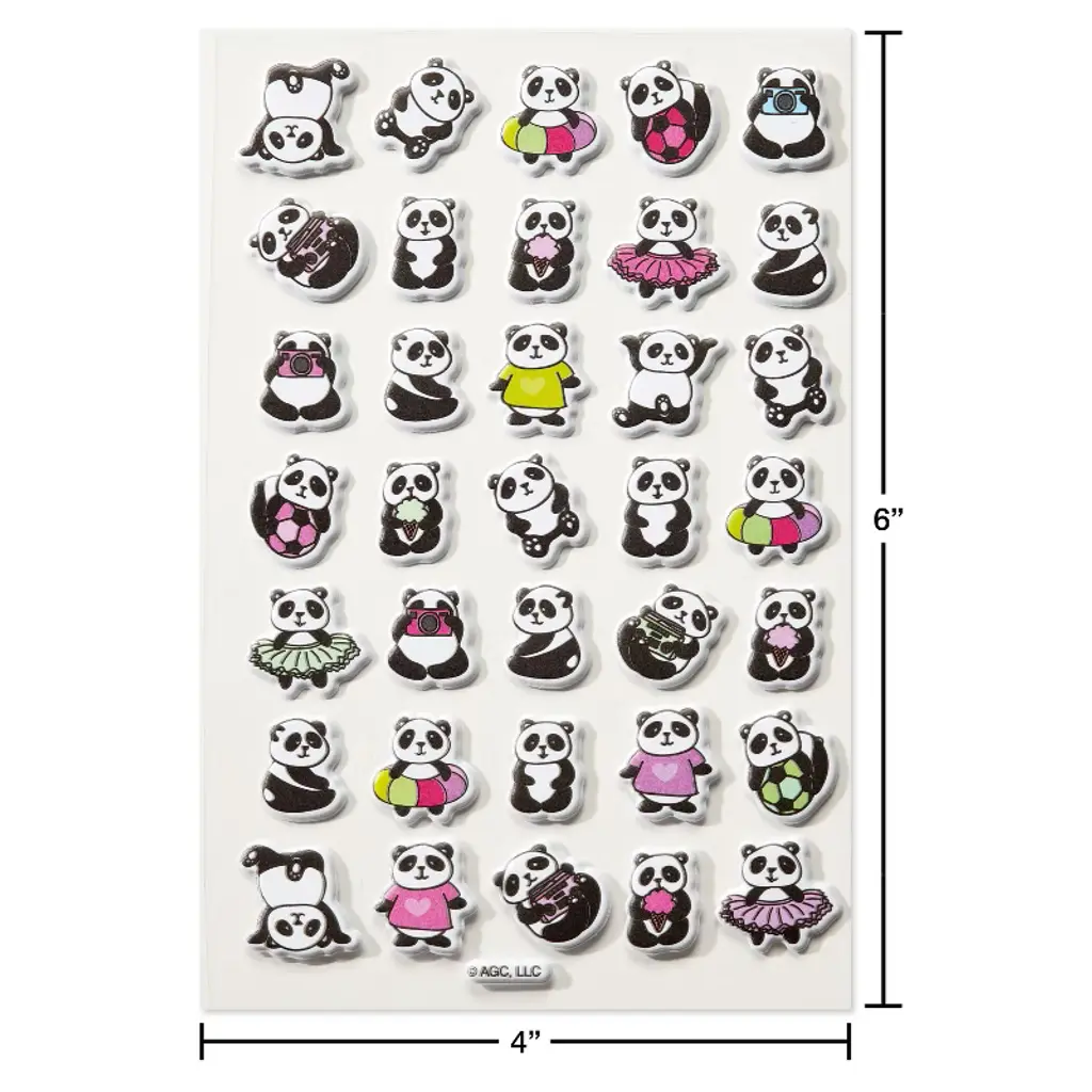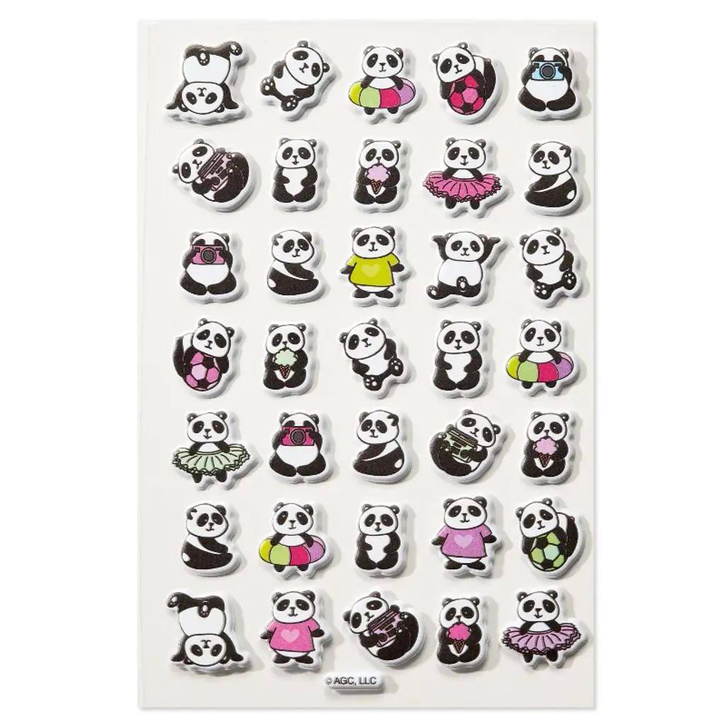 Make any day more fun with puffy panda stickers from American Greetings. This pack of 35 stickers features pandas doing what they do best – being adorable! In multiple poses and outfits, these pandas are perfect for classrooms, parties, treat bags or just because. So go ahead and add some cuteness to every day!
