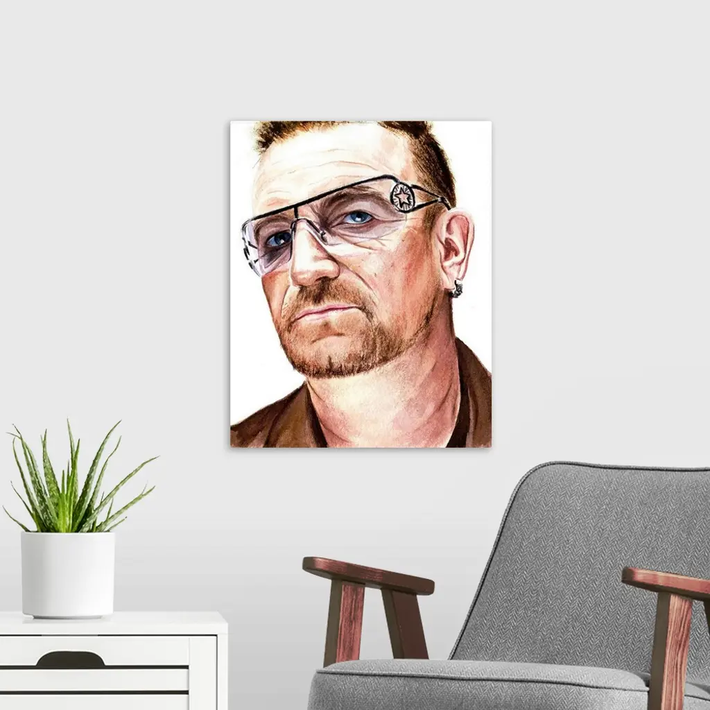 Watercolor portrait of 360-era Bono. 1 of 4.