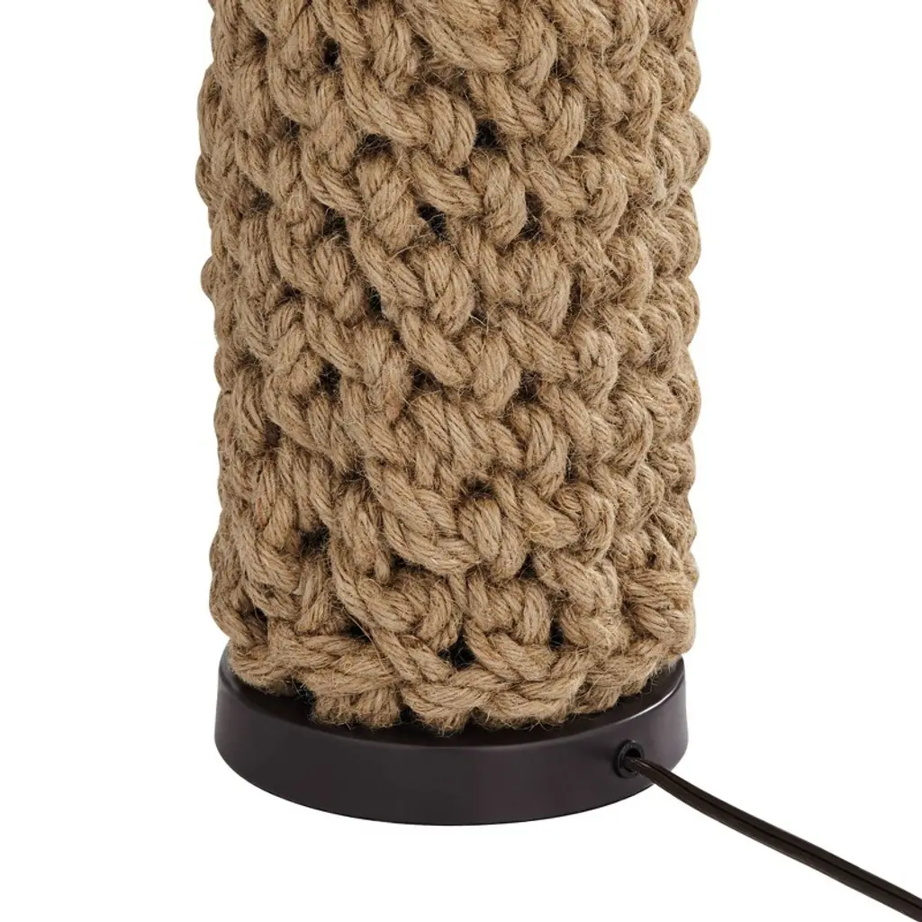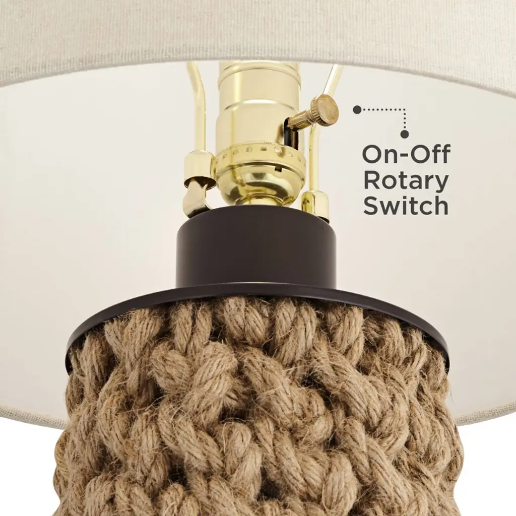 Decorate the easy way with this set of two table lamps from the 360 Lighting brand. The lamps each feature a cylinder-shaped base wrapped with natural rope material. Metal accents are in a handsome bronze finish. Up top are oatmeal fabric lamp shades that provide a final designer touch. An ideal look for a modern farmhouse, nautical coastal, or rustic style room.