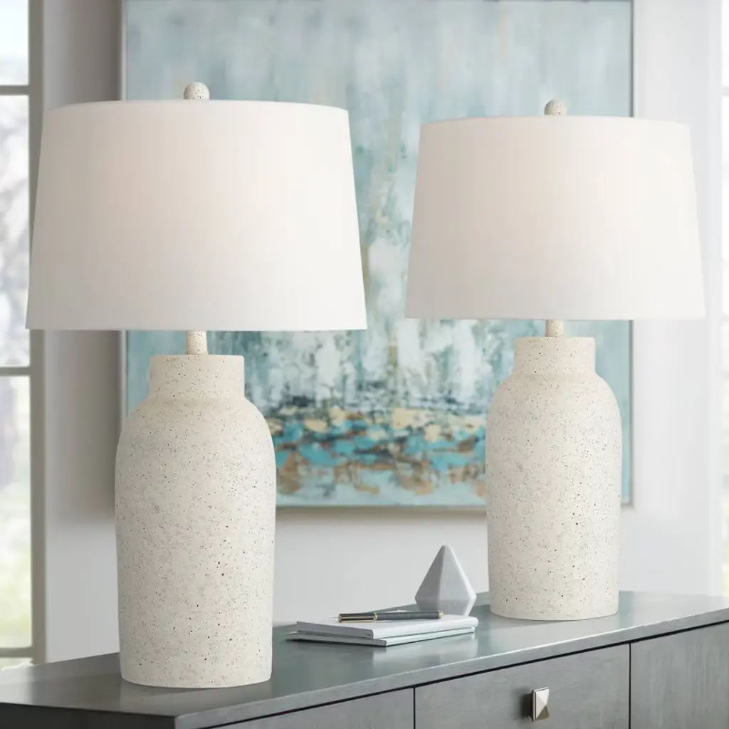 360 Lighting Jaime 27 1/2" Tall Modern Coastal 3-way Table Lamps Set Of 2 Faux White Sandstone Finish White Shade Living Room Bedroom Bedside
