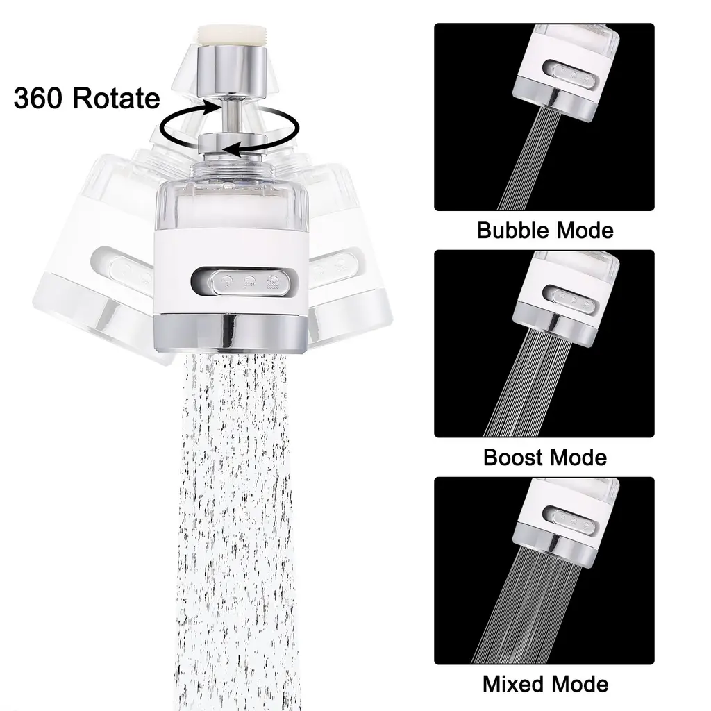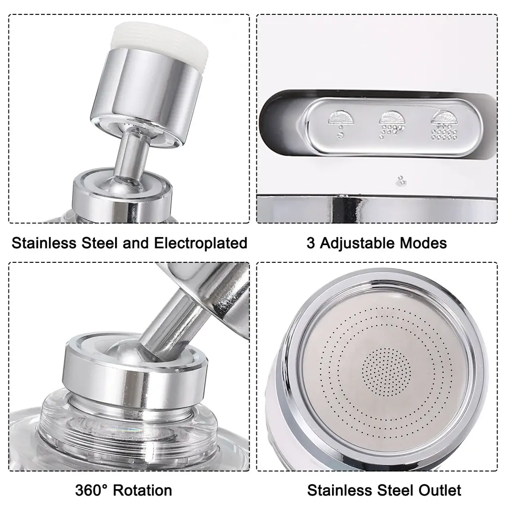 360° Rotatable Faucet Sprayer M22 Thread 3 Modes Adjustable Deep Sinks, Aerator - Silver Tone - Silver Tone
