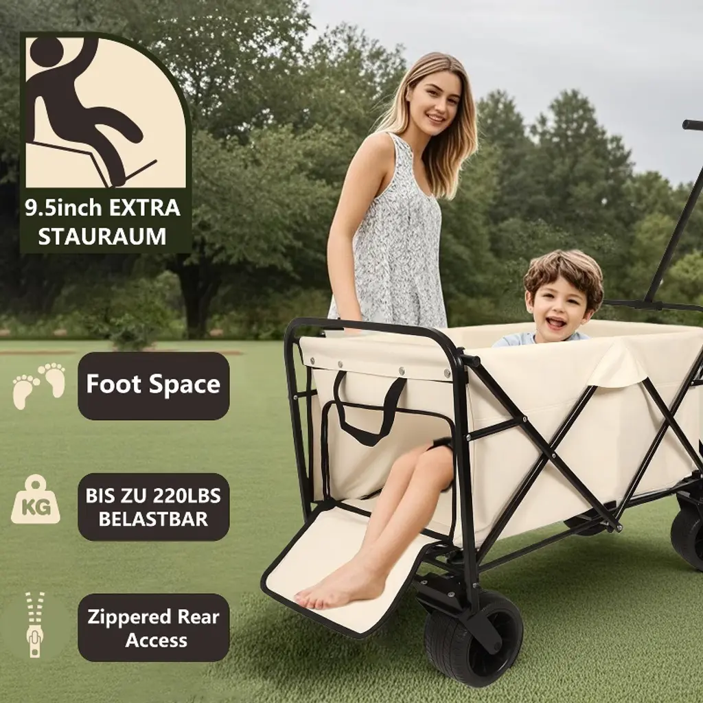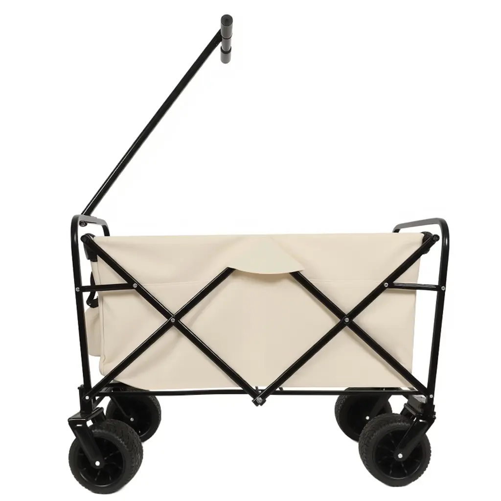 360 Rotating Rear Wheel Heavy-duty Folding Wagon ̈C Multi-use Garden Cart With All-terrain Wheels Beige