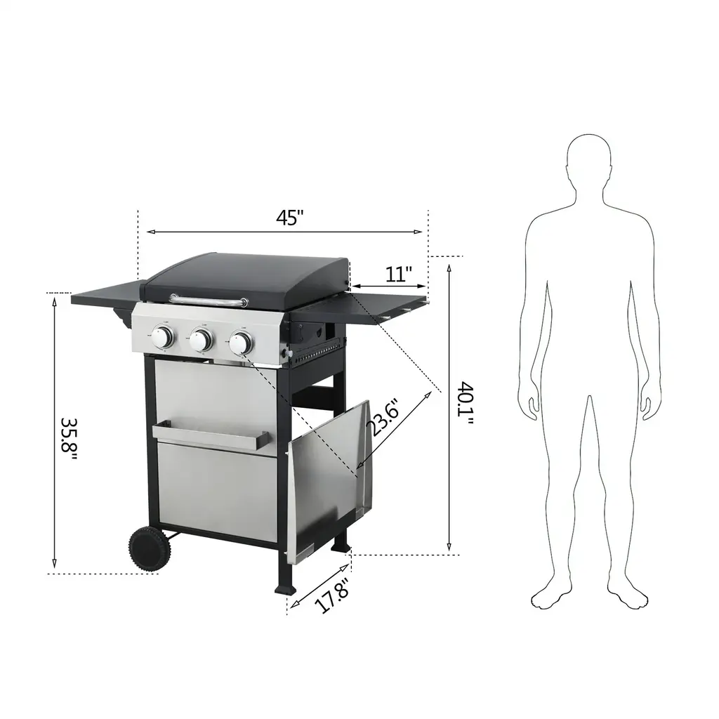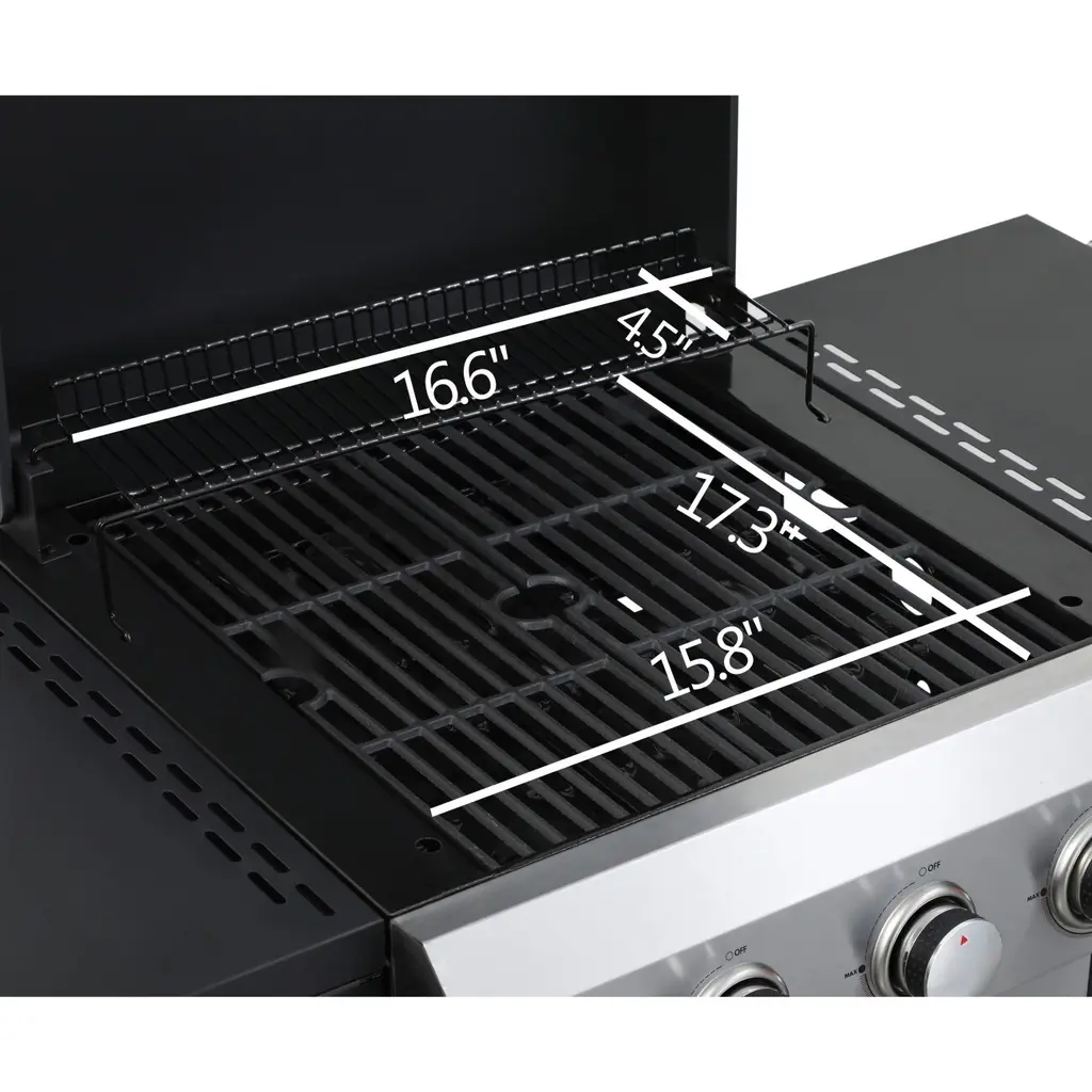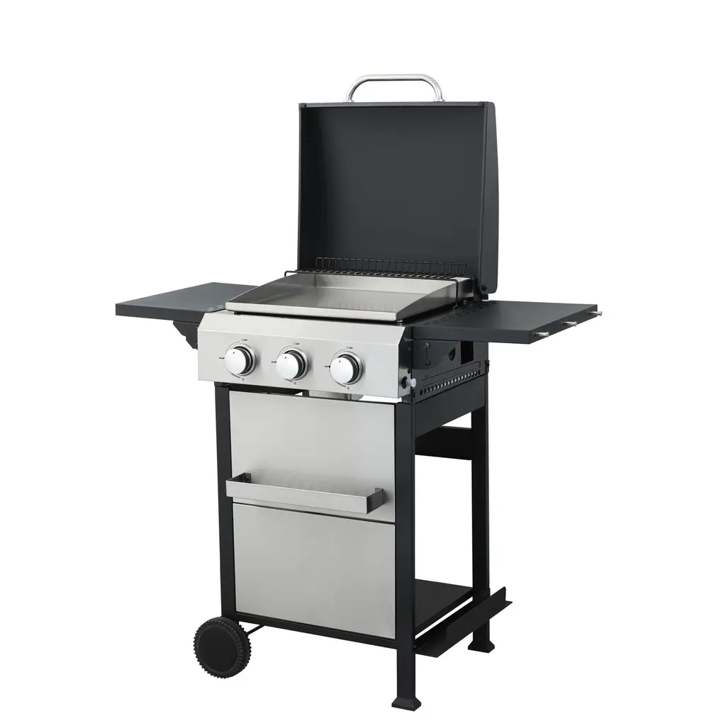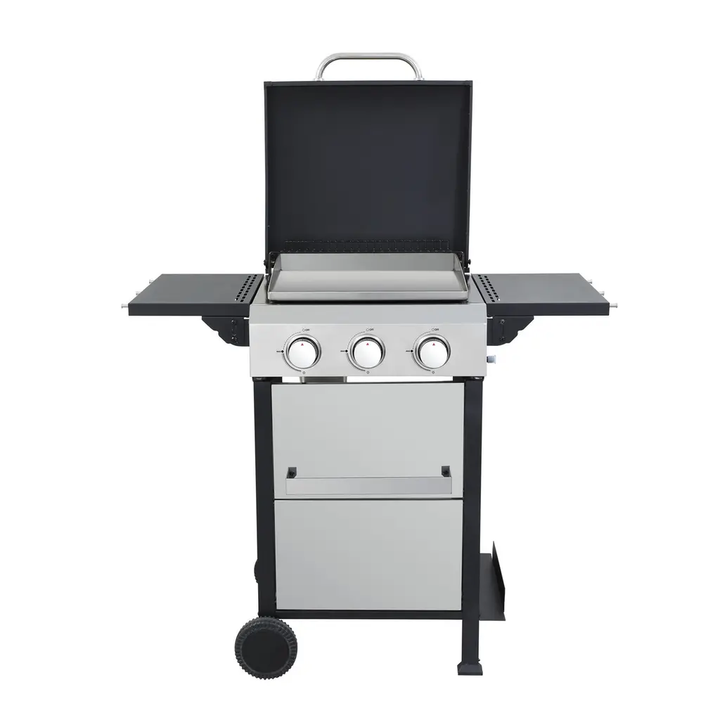 36900 Btu 3-Burner Propane Gas Bbq Grill With Ss Plancha, Enamel Grids - Propane Gas