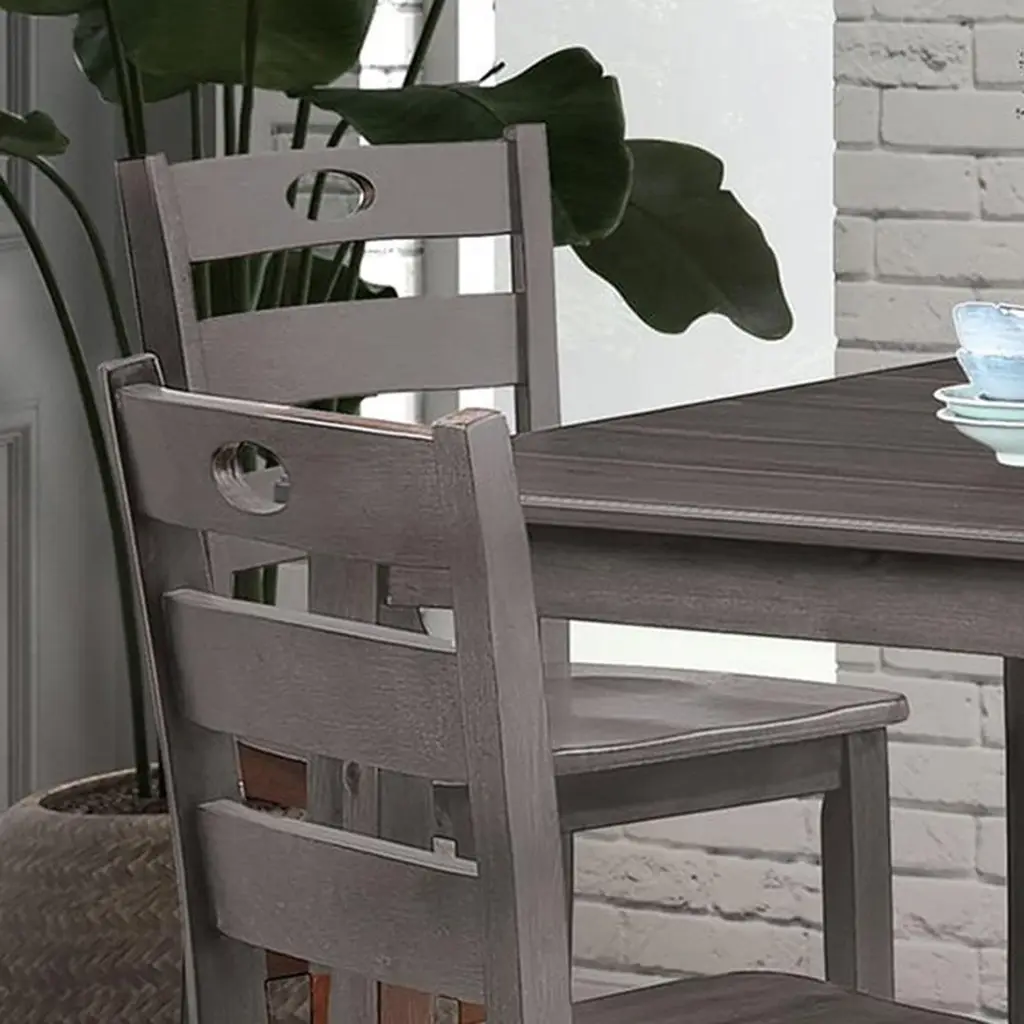 Introducing the 5 Piece Dining Room Set, featuring a table and four chairs, perfect for creating a cozy gathering spot in your home. Crafted from solid rubberwood and birch veneers, this set offers unmatched strength and stability. The 36" square dining table provides plenty of room for four, making it ideal for breakfast nooks or smaller dining spaces.