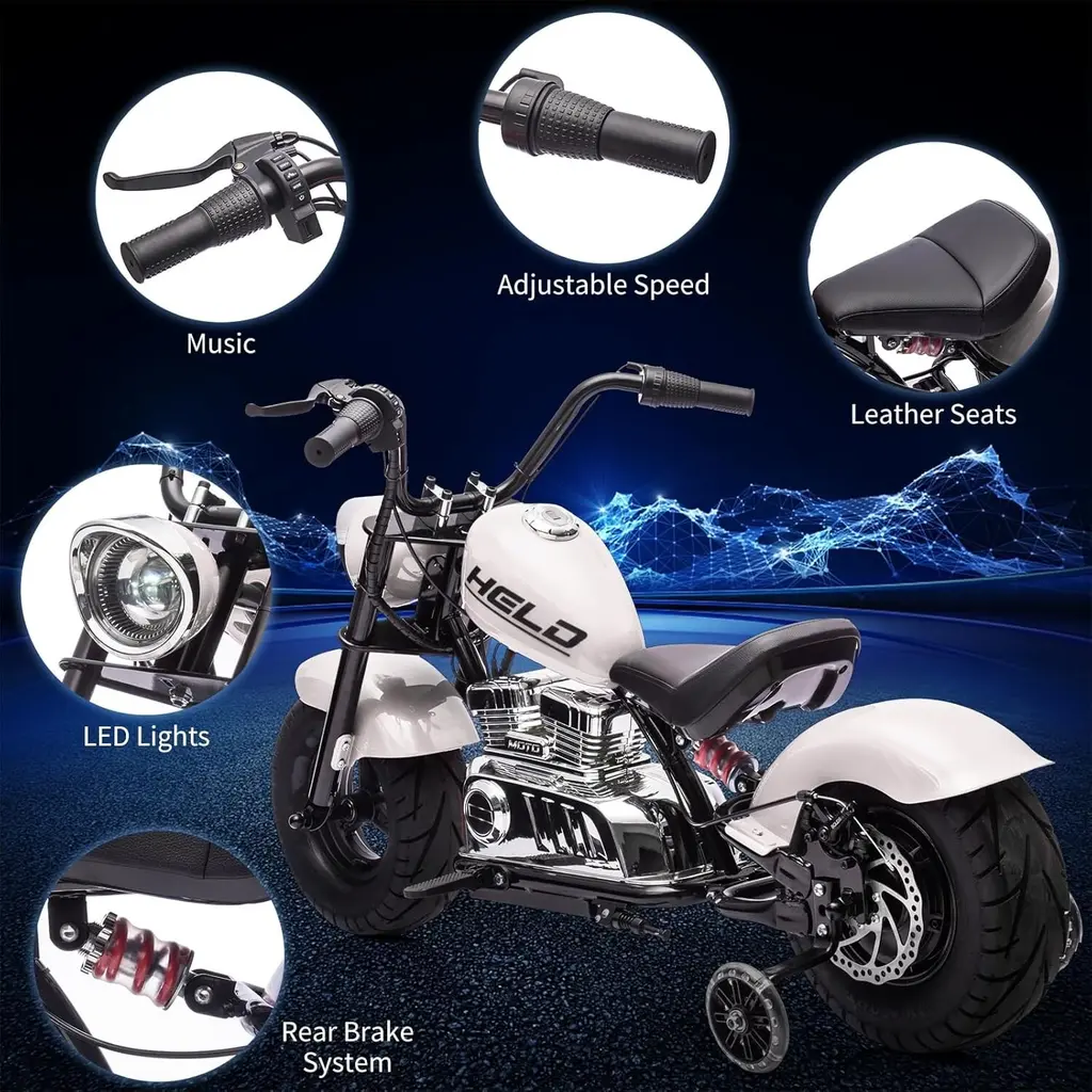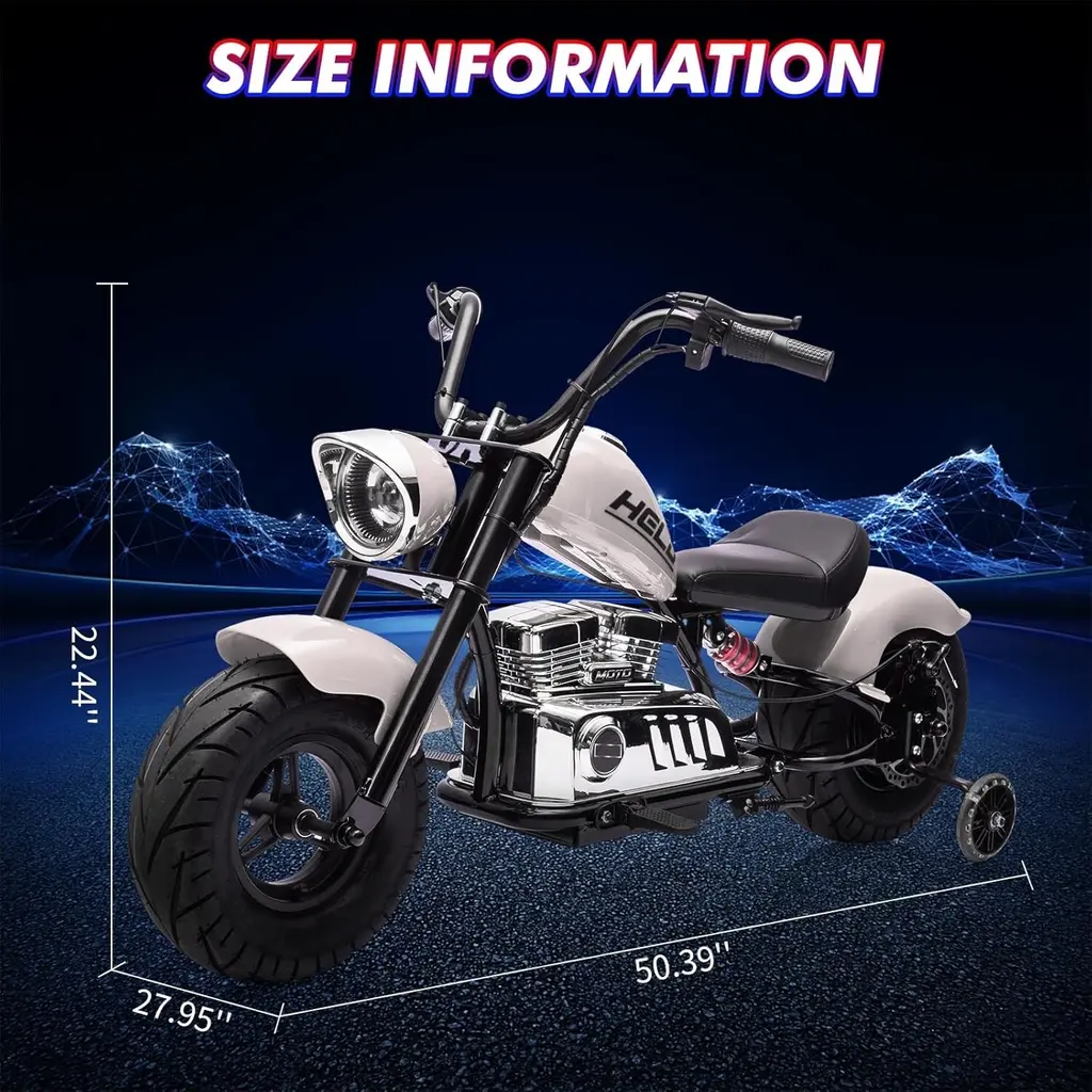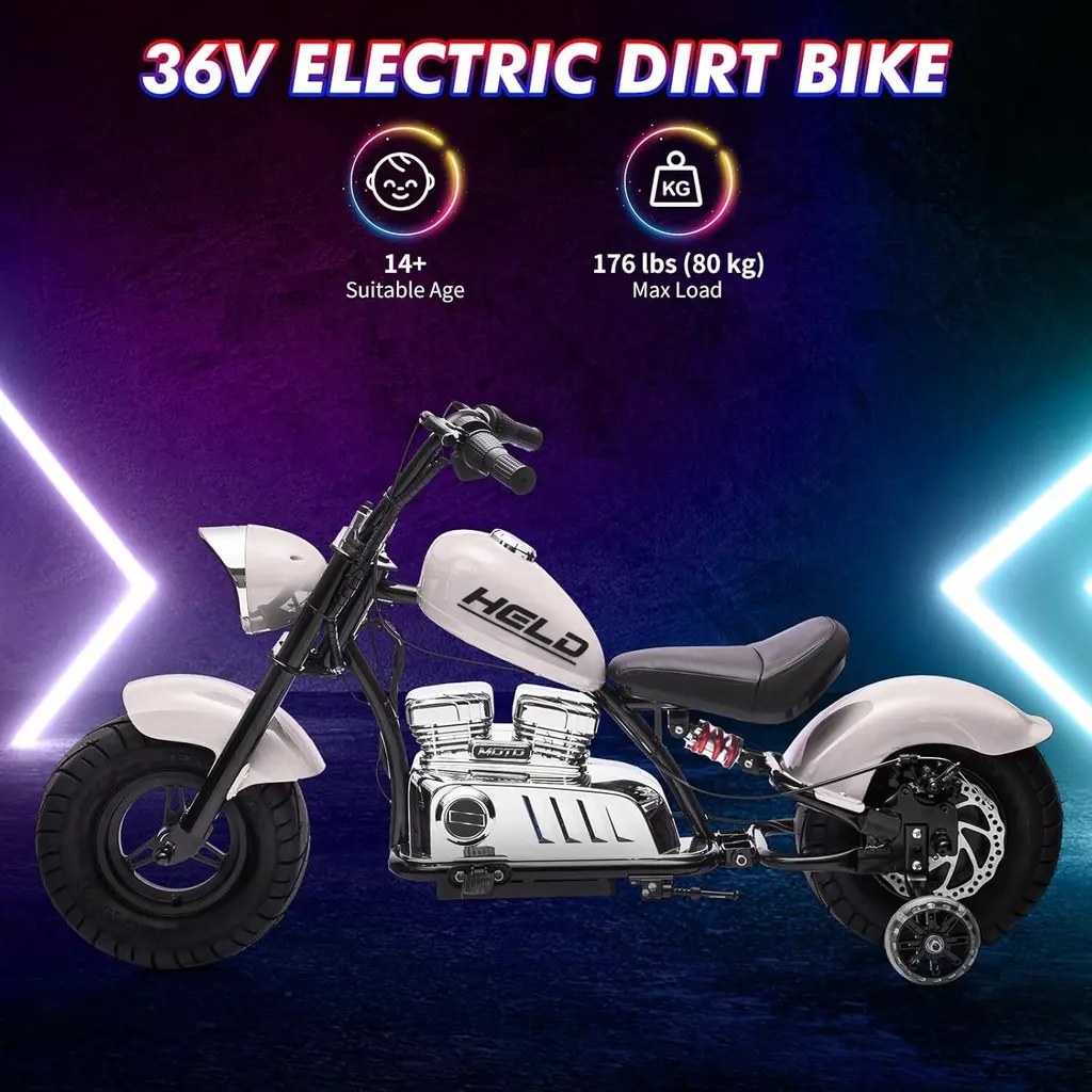 36v Kids Electric Dirt Bike, Ride On Electric Motorcycle With Training Wheels - White