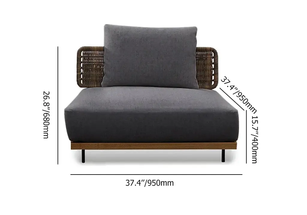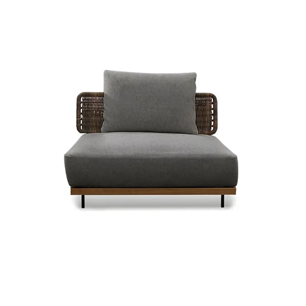 It can be used as a complement to the modular sofa or purchased and used separately. The robust yet lightweight aluminum frame, combined with ergonomic cushions, ensures long-lasting comfort. All materials are weatherproof, so you can enjoy more time outdoors and less maintenance.