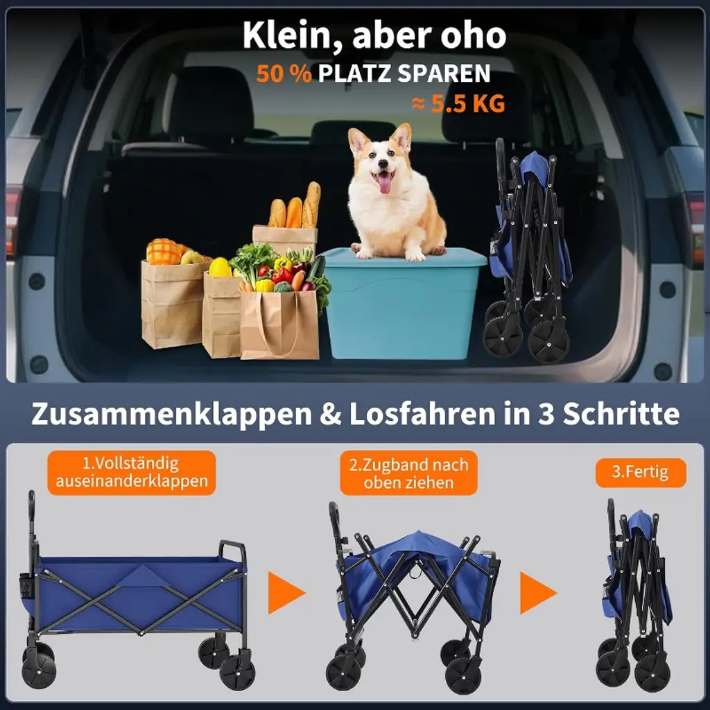 380lbs Foldable Collapsible Wagon Carts With All-terrain Wheels & Adjustable Handle, Portable Grocery Wagon For Shopping, Camping, Garden, Blue