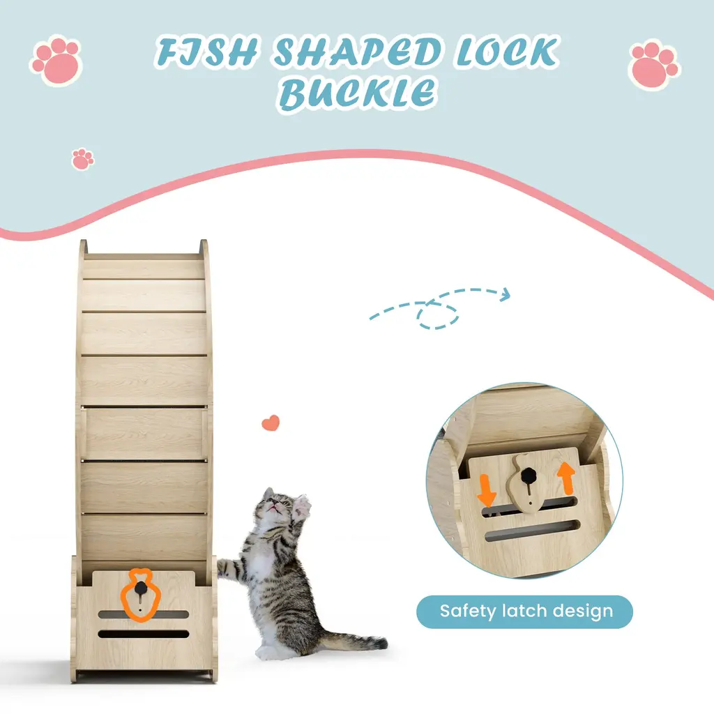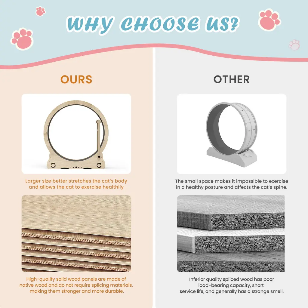 The cat running wheel consists of a base and a running wheel, in addition to adding a teasing device, which is more likely to stimulate the interest of cats to exercise, this product adds fun and joy to the daily exercise of cats! Features: