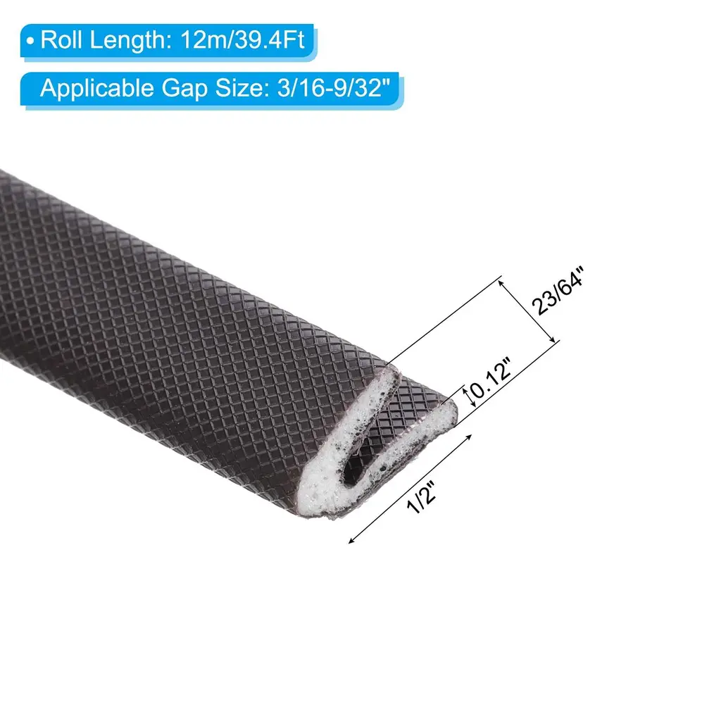39.4ft Pu V-Shaped Weather Stripping Door Seal, Sealing Strip - Brown - 9/16"x11/16"