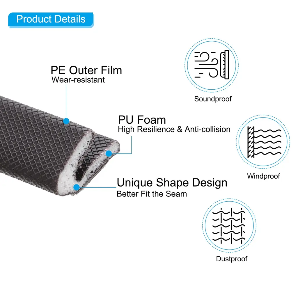 Our weather stripping is widely used in frames, and large gaps for sealing purpose, it can reduce heat loss while keeping dust and noise out for your home, providing you a quiet and comfortable environment. In addition, it can reduce collision and wear on window/while opening and closing.The draft stopper is suitable for various types of sliding window, doors, or swing doors, such as security doors, patio doors, glass doors, balcony doors, wardrobe doors, cabinet doors, etc.SpecificationMaterial: PE Outer Film, PU FoamColor: BrownRoll Length: 12m/39.4FtSize: 12 x 9mm/1/2 x 23/64 inch (WxH)Thickness: 3mm/0.12inchApplicable Gap Size: 4.5-7mm/ 3/16-9/32"Package List: 1 Roll x Weather StrippingAdvantageOur weather sealer is made of PE outer film and PU foam, is wear-resistant, not easy to tear and deform for durable use. weather sealer has high resilience, quick rebound after pressing, effective anti-collision, and reducing impact. Unique shape design fits the seam better, providing a better sealing effect for insulation, windproof, soundproof, dustproof, etc. Self-adhesive design, strong stickiness, not easy to fall off.InstructionThe weather stripping uses a self-adhesive design, measure the length of the area that needs to be sealed, cut out the required length, peel off the backing and stick the sealing strip to the corresponding position.NOTE1. After pasting the weather strip, please do not frequently open and close the within 24 hours to allow it to fit more closely for better effect.2. Please check the size before purchasing.