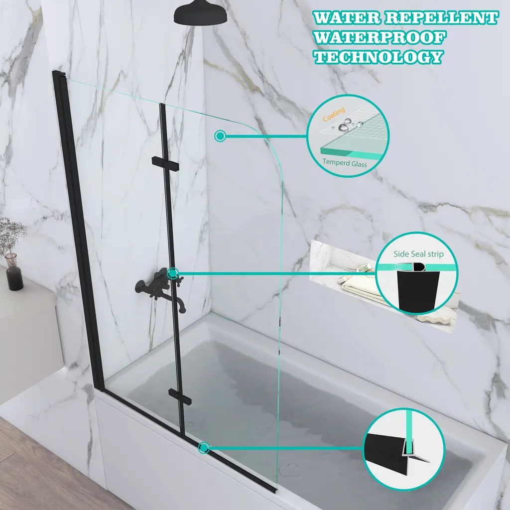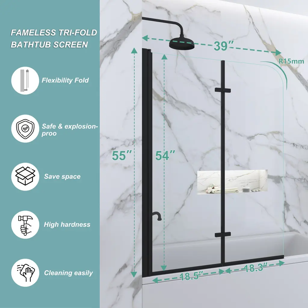 1.Dimensions-this bathtub shower door size is 39 in. W x 55 in. H, with thick 1/4 in. tempered glass panels this tub shower door is the perfect size to match with standard bathtub.2.Strong and safety-this tub door is made of 6mm tempered safety glass which prevent shatters from splashing in case of accidental breakage with safe round conner design offer you safe space.3.Keep clean and clear-this tub door glass is treated with nano coating on both sides this coating provides a durable and stain-resistant surface, which prevents limescale buildup4.Flexible design-this tub door is reversible, fit your specific layout, you can install it on left side or right side base on the design of your bathtub professional installation recommended don't install alone