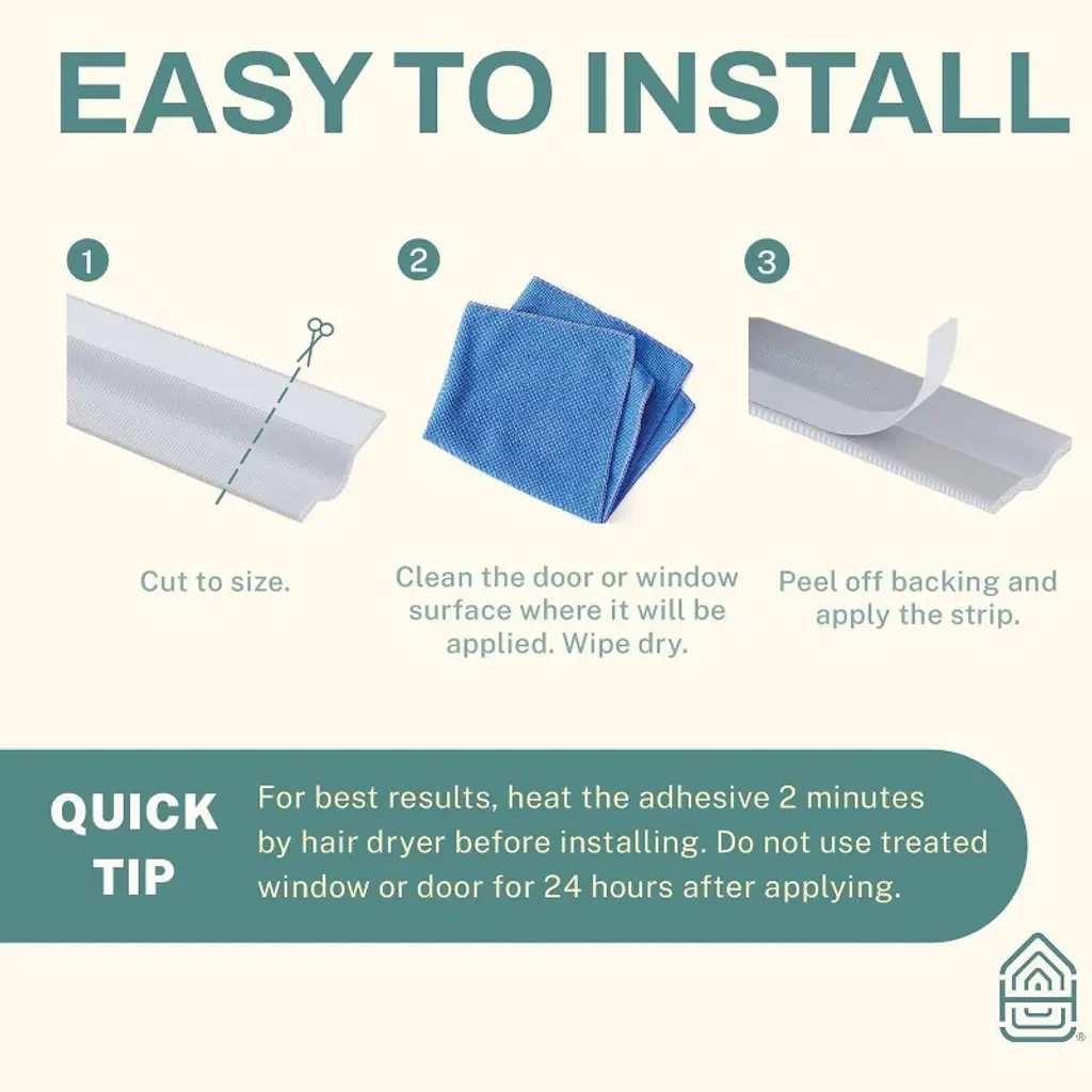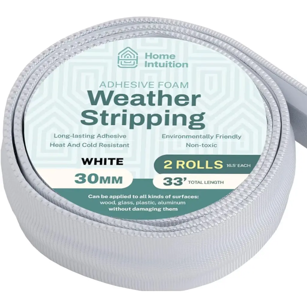 Upgrade your home with better insulation and soundproofing – without the trouble and expense of replacing old doors and windows. Home Intuition Adhesive Weatherstripping improves the function of sliding doors and windows especially, but also works effectively on a variety of doors and windows throughout the home. Doubles as a door stopper to avoid collision when slammed.FEATURES & BENEFITS:Weather Seal StripSelf-Adhesive BackingEasy to InstallNo Damage to SurfacesMaterial Type: FoamDimensions: 20 mm Wide x 33 Feet LongEASY INSTALLATION1. Cut to size.2. Clean the door or window surface where it will be applied. Wipe dry.3. Peel off backing and apply the strip.* For best results, heat the adhesive 2 minutes by hair dryer before installing. Do not use window or door for 24 hours after applying.LOWER YOUR ENERGY BILLUnique grid adhesive backing sticks firmly with no sticky residue. Provides an impressive sealing effect with high flexibility. Block cold, heat, dust, drafts, noises, odors, and water from entering or exiting. Save on heating and cooling costs in a big way with little effort and enjoy peace of mind as your monthly energy bill drops!SLIDING DOORS & SLIDING WINDOWSDampen noises and soundproof the interior of the home. Apply the seal strip as effective temperature insulation and a reliable draft stopper.PREVENT WEAR & TEAR FROM OPEN/CLOSEThe seal strip is suitable for a wide variety of swing doors and smaller doors including wooden doors, frameless glass doors, cabinets, cupboards, wardrobes, and doors on furniture. Apply it to walls to avoid damage from doorknob or door handle collisions. Cushion the bottom edge and sides of cabinet doors to prevent wear & tear from the constant opening and closing.