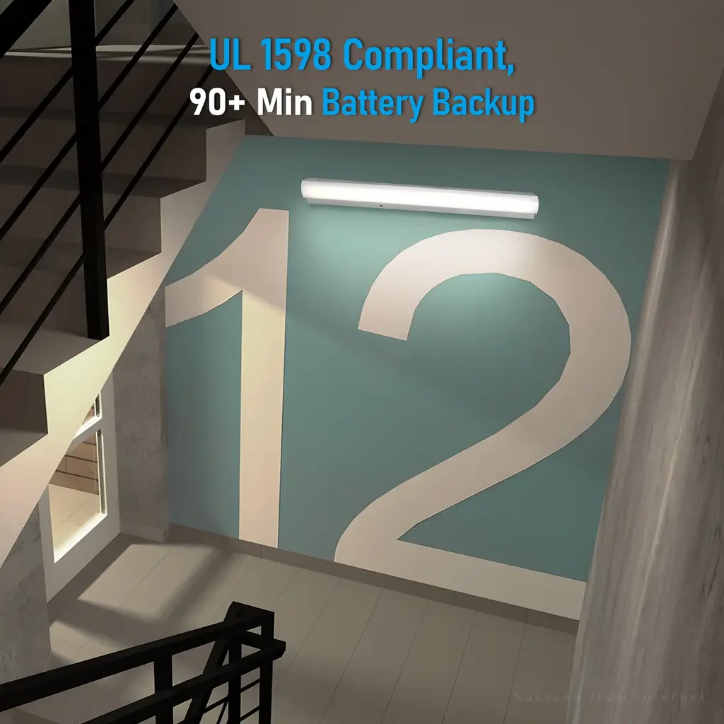 3Cct 4Ft Commercial Linear Stairwell Strip Light With Emergency Battery Backup, 0-10v Dimmable - 4Pack