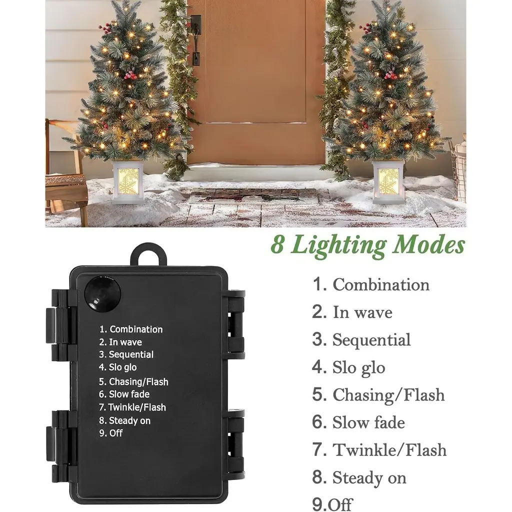 EASY ASSEMBLY: This 3ft Christmas tree is a breeze to assemble- simply unfold the branches and add batteries (not included),and it's ready to decorate your house in no time! Just enjoy the festive glow of 78 warm LED lights in Christmas holiday. IDEAL FOR CHRISTMAS DECORATION: The 3ft small Christmas tree comes in a rich color, with natural lifelike green leaves, Crafted with 121 branch tips ,78 lights, red berries and snow flocked leaves, this Christmas tree lends a lifelike and snowy appearance to your festive display. Create a winter wonderland in any room of your home! PRE-LIT ARTIFICIAL TREE: With 78 pre-lit LED lights, this Christmas tree ensures a bright and beautiful display. Even if one light goes out, the rest will continue to shine, ensuring your Christmas holiday tree remains vibrant all season long. FESTIVE HOLIDAY APPEAL: The Xmas tree features a classic retro-style potted base that adds a touch of elegance to your holiday party decor. It's not only stylish but also solid and stable, ensuring your tree stays securely in place. CONVENIENT TIMER FUNCTION: The battery box includes a handy timing function, allowing you to set the tree to automatically stay lit for 6 hours, then turn off for 18 hours. It's a hassle-free way to keep your tree illuminated without constantly adjusting the lights. XMAS TREE DIMENSION: Measuring 3 ft tall and 22 in wide at the bottom, our Christmas festival tree is designed to fit seamlessly into most homes, apartments, entryways, corridors, indoor or outdoor and other scenes. Whether you have limited space or want to add a touch of festive spirit to various areas, this 3ft Christmas tree with lights is the ideal choice.