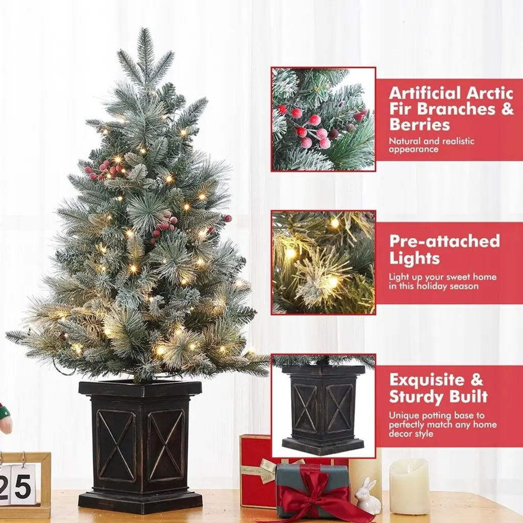 Bright Lighting Features: This pre-lit artificial tree boasts 78 LED lights with 8 distinct lighting modes, allowing you to effortlessly create the perfect ambiance, whether you prefer a soothing glow or lively flashing effects. Quality and Safety Materials: Our 3ft Pre-Lit Snow Flocked Christmas Tree is constructed from flame-retardant PVC and PE materials, providing a safe, odor-free, and hypoallergenic option. Ideal for families with sensitivities. Hassle-Free Setup: Enjoy a no-assembly design! With our hinged Xmas tree, you can easy spread the branches and leaves right out of the box for a warm, inviting look—simplifying your decorating process. Consistent Lighting Performance: The small tree 78 LED lights function independently, ensuring that if one bulb fails, the others continue to shine brightly. Experience peace of mind with reliable lighting throughout the holiday season. Joyful Holiday Ambiance: This elegantly flocked tree enhances any home or office with its natural fullness, enriching your holiday decor and fostering a cheerful atmosphere for your Christmas celebrations.