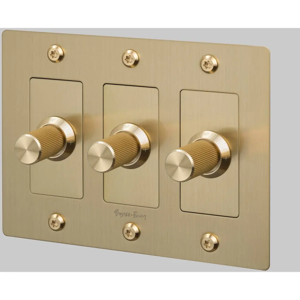 A dimmer switch finished in Smoked Bronze. The dimmer knob features our signature, linear knurl pattern and is made from solid Smoked Bronze metal.FYI: This piece has a 4 mm shadow gap when installed.